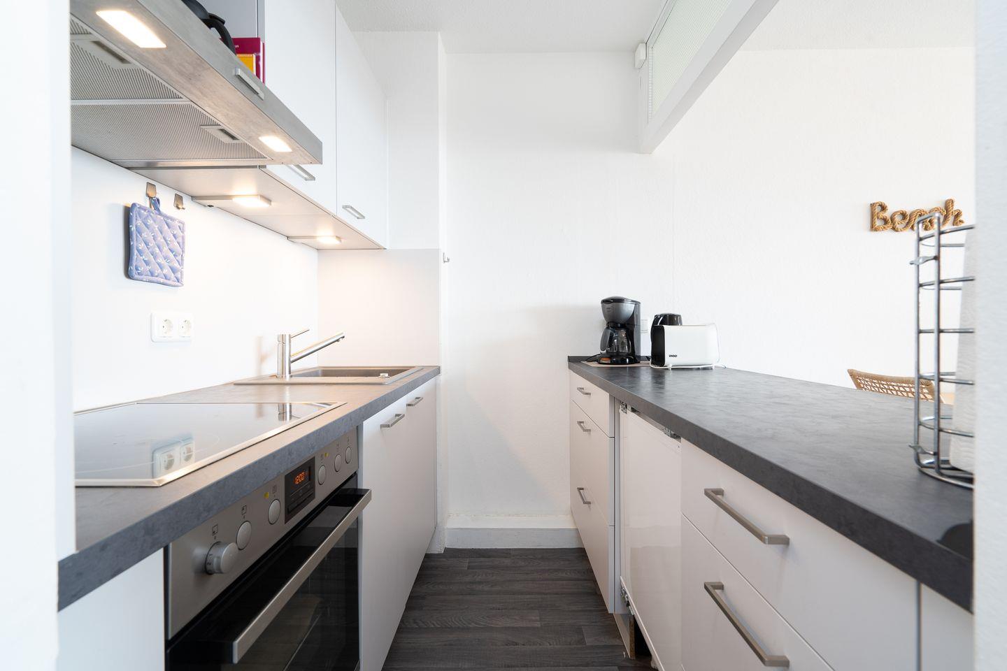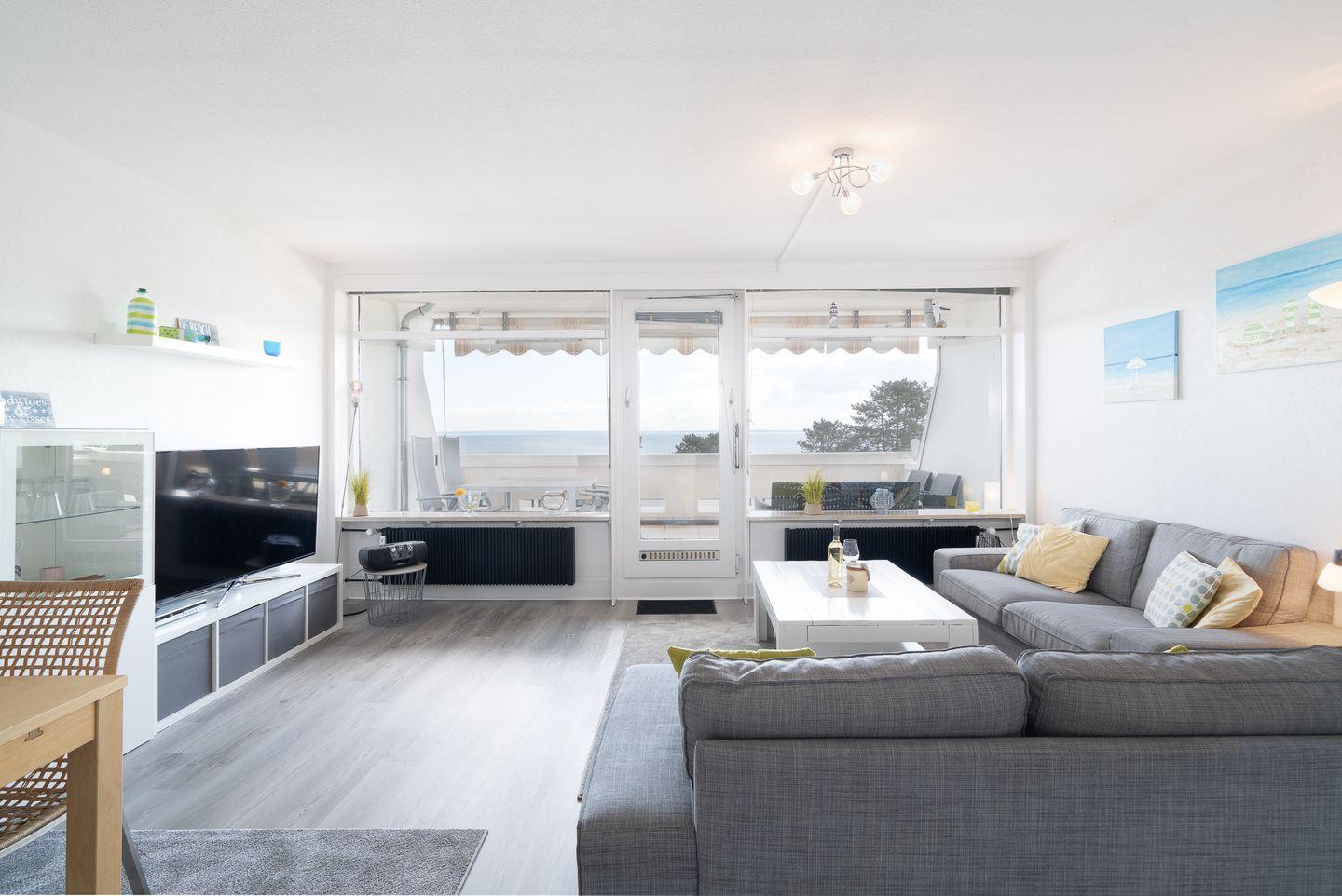 der große Balkon mit Esstisch und Lounge-Ecke in Süd-Ost-Lage bietet über die 1. Reihe der Terrassenhäuser hinweg einen Blick in die Lübecker Bucht. Die Wohnung ist für 2 Erwachsene und 2 Kinder geeignet und bietet wunderbare Voraussetzungen für einen entspannten Urlaub. Der geräumige Wohn- und Essraum bietet eine gemütliche Sitzgruppe und Platz zum Spielen für die Kleinen. Die kleine, aber mit Spülmaschine, Backofen und Herd ausgestattete Küche ist mit einer Durchreiche zum Wohn- und Essbereich hin offen. Der Esstisch ist praktischerweise nur eine Armlänge von der Durchreiche der Küche entfernt. Im ersten Schlafraum stehen zwei Einzelbetten (jeweils 90 cm x 200 cm) sowie im zweiten Schlafraum ein Etagenbett. (je 90 cm x 190 cm). Das modernisierte Duschbad ist innenliegend. Ohne eine Straße überqueren zu müssen, sind es nur wenige Schritte zum schönen Sandstrand. Eigener PKW-Stellplatz vor dem Haus.