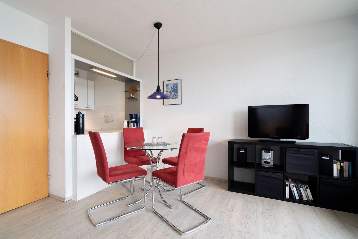 die Wohnung befindet sich in einem Hochhaus in der 1. Etage mit Balkon in Süd-Ost-Lage und etwas Ostseeblick über die 1. Reihe der Flachbauten hinweg. Vom kombinierten Wohn- und Essbereich haben Sie Zugang zum Balkon. Die Küche, mit Spülmaschine, Backofen und Herd ausgestattet, ist mit einer Durchreiche zum Wohn- und Essbereich hin offen. Im Schlafraum stehen ein Etagenbett für zwei Personen (je 90 x 190 cm) und ein Einzelbett (90 x 190 cm). Im Wohnbereich befindet sich zudem eine Schlafcouch (130 cm x 180 cm). Es gibt ein Duschbad mit Oberlicht. PKW-Stellplatz inklusive. Zum Strand sind es nur wenige Fußschritte.