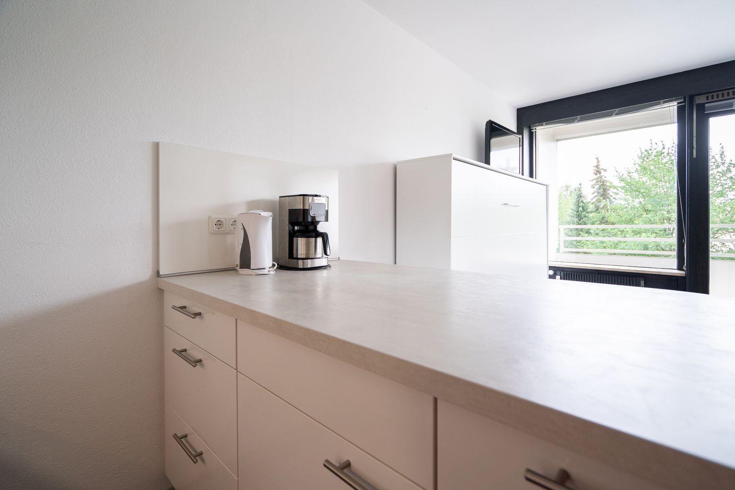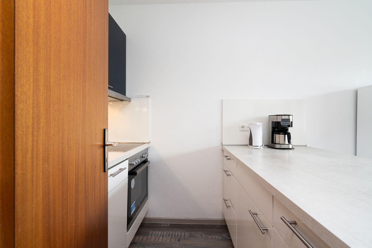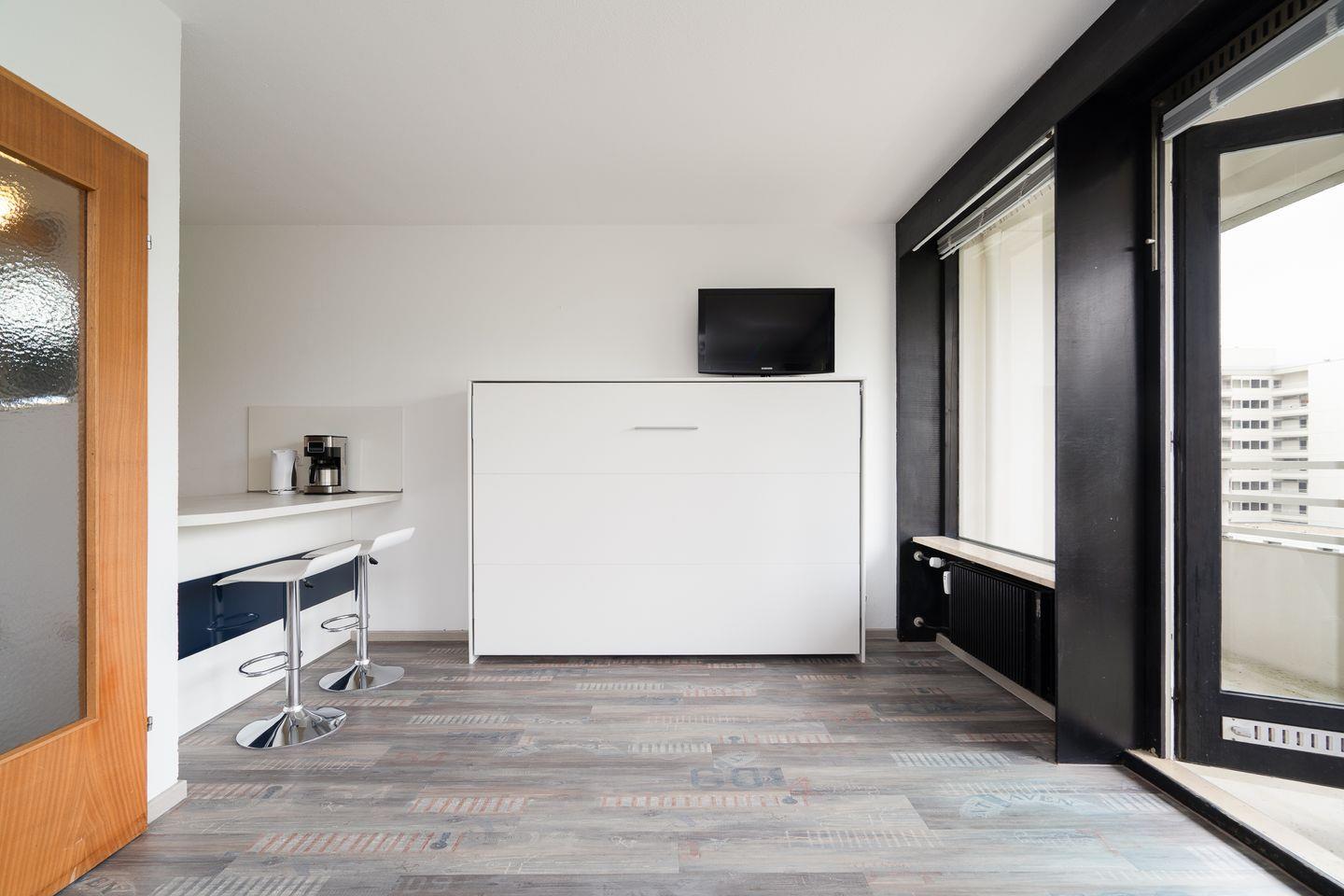 diese 1-Raum-Ferienwohnung liegt in der Apartmentanlage Ferienpark in der 3. Etage mit einem Balkon in Süd-West-Lage und seitlich etwas Meerblick. Die Wohnung ist ca. 33 qm groß. Im kombinierten Wohn- und Schlafraum mit Sofaecke steht Ihnen ein Schrankbett (1,40x2,00m) zur Verfügung. Die moderne Küche ist mit Spülmaschine, Backofen und Herd ausgestattet und hat einen Esstresen, der zum Wohnraum hin offen ist. Das Duschbad ist innenliegend. Zum Strand und zur Promenade sind es nur wenige Gehminuten. PKW-Stellplatz inklusive.