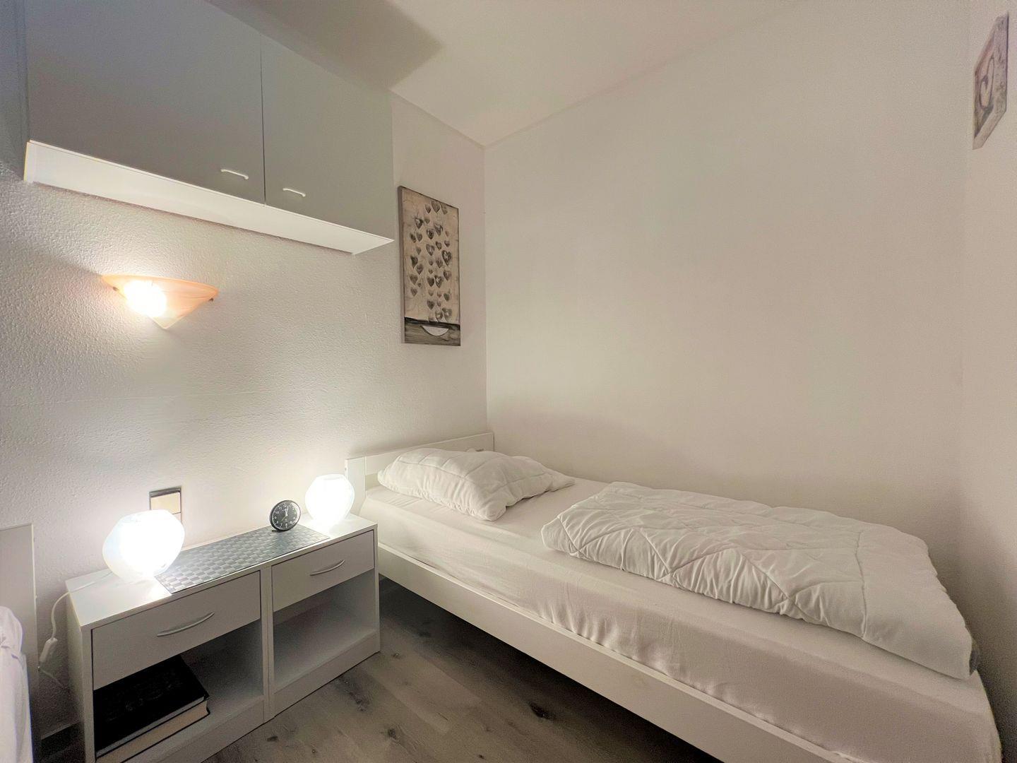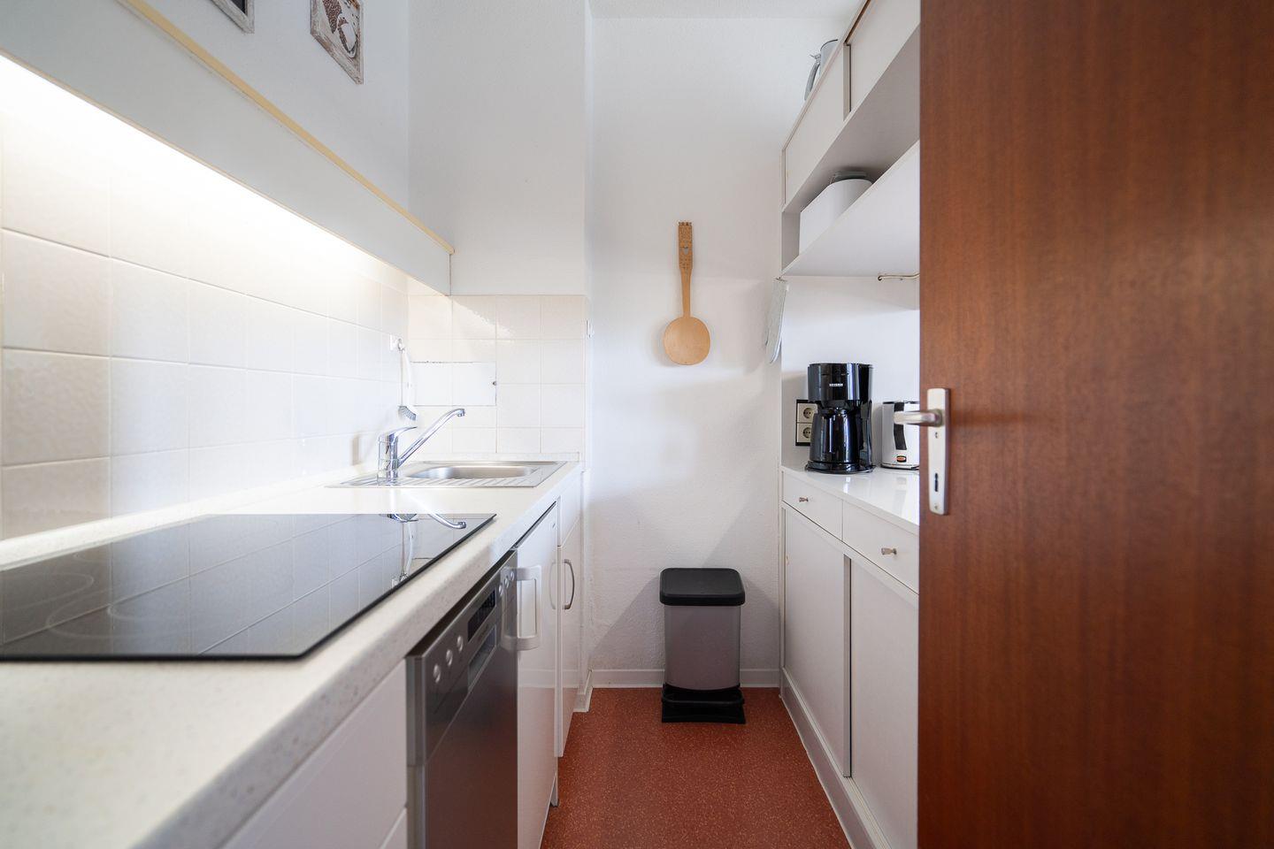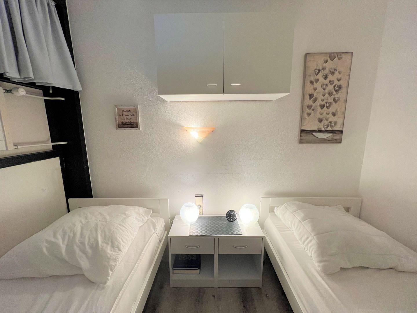 Die Küche hat eine Durchreiche zum kombinierten Wohn- und Essbereich. Im ersten Schlafraum steht ein Doppelbett, im zweiten Schlafraum ein Etagenbett. Das Duschbad ist innenliegend. Den Strand erreicht man mit wenigen Fußschritten ohne Straßenüberquerung. WLAN inklusive.