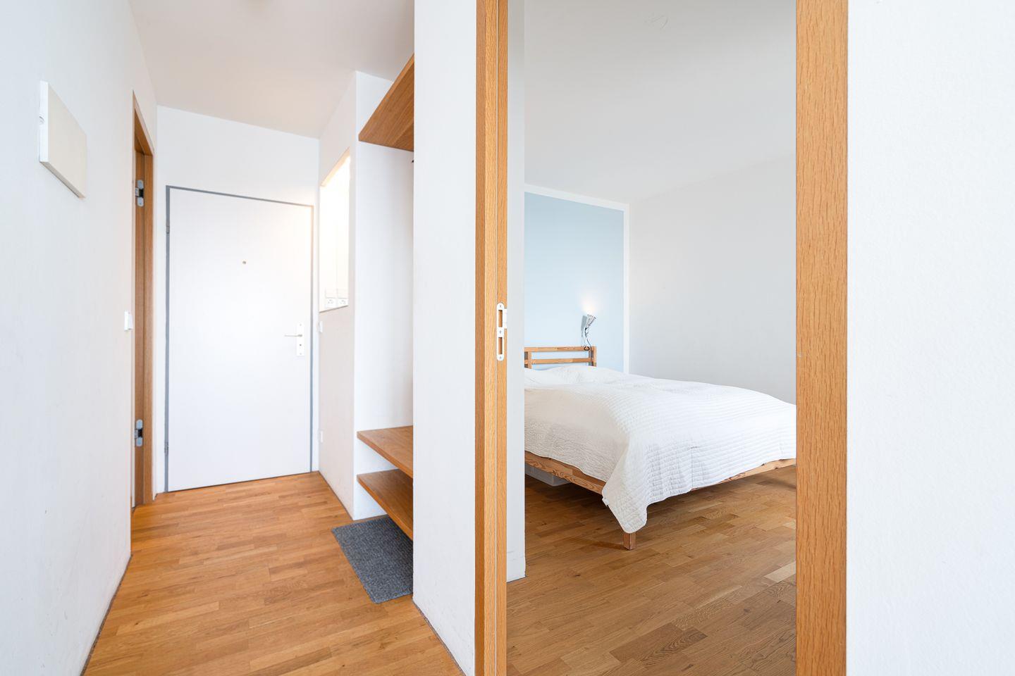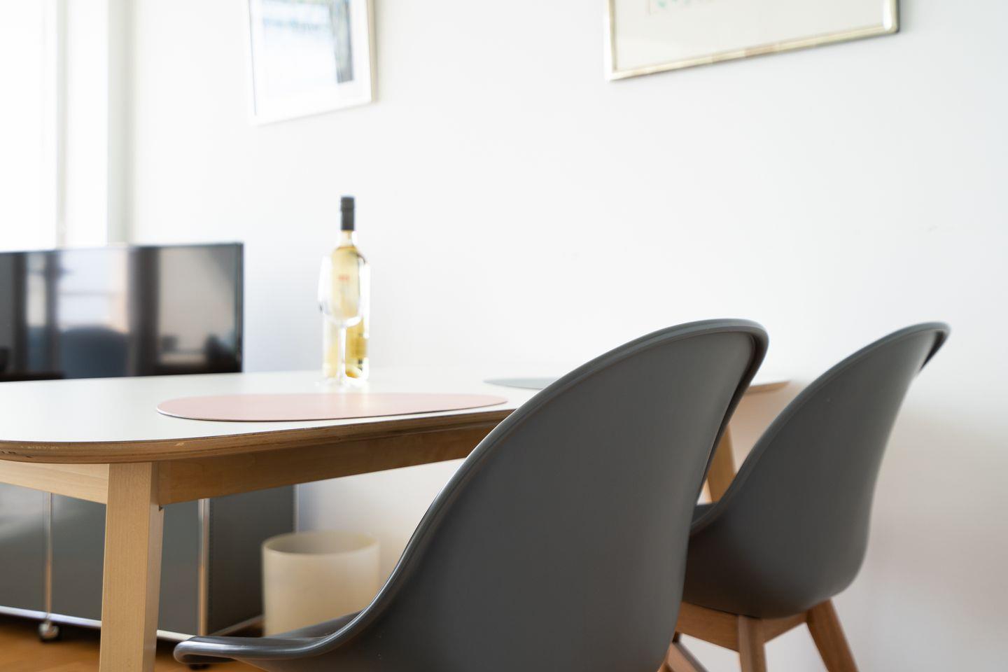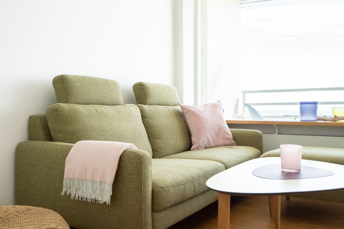Vom modernen, kombinierten Wohn- und Essbereich haben Sie Zugang zum Balkon in Süd-Ost-Lage und schönem Ostseeblick. Die Küche ist mit Spülmaschine, Backofen und kleinem Kochfeld ausgestattet. Das Schlafzimmer hat ein Doppelbett und ein Fenster mit Ostseeblick - Aufwachen und das Meer sehen, was gibt es Schöneres? Zum Strand sind es nur wenige Schritte zu Fuß. WLAN ist inklusive.