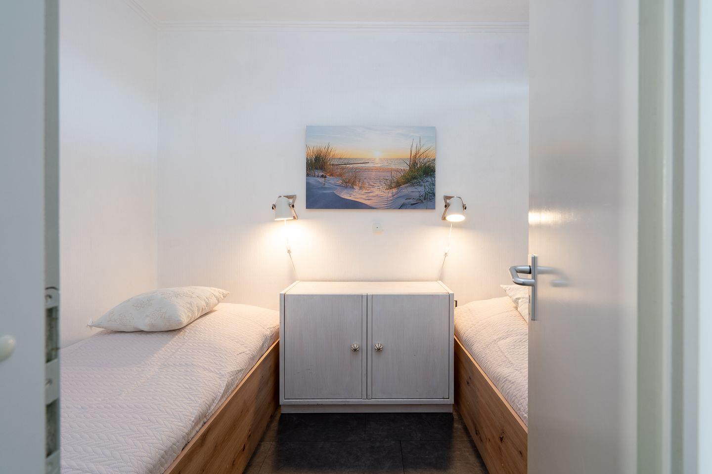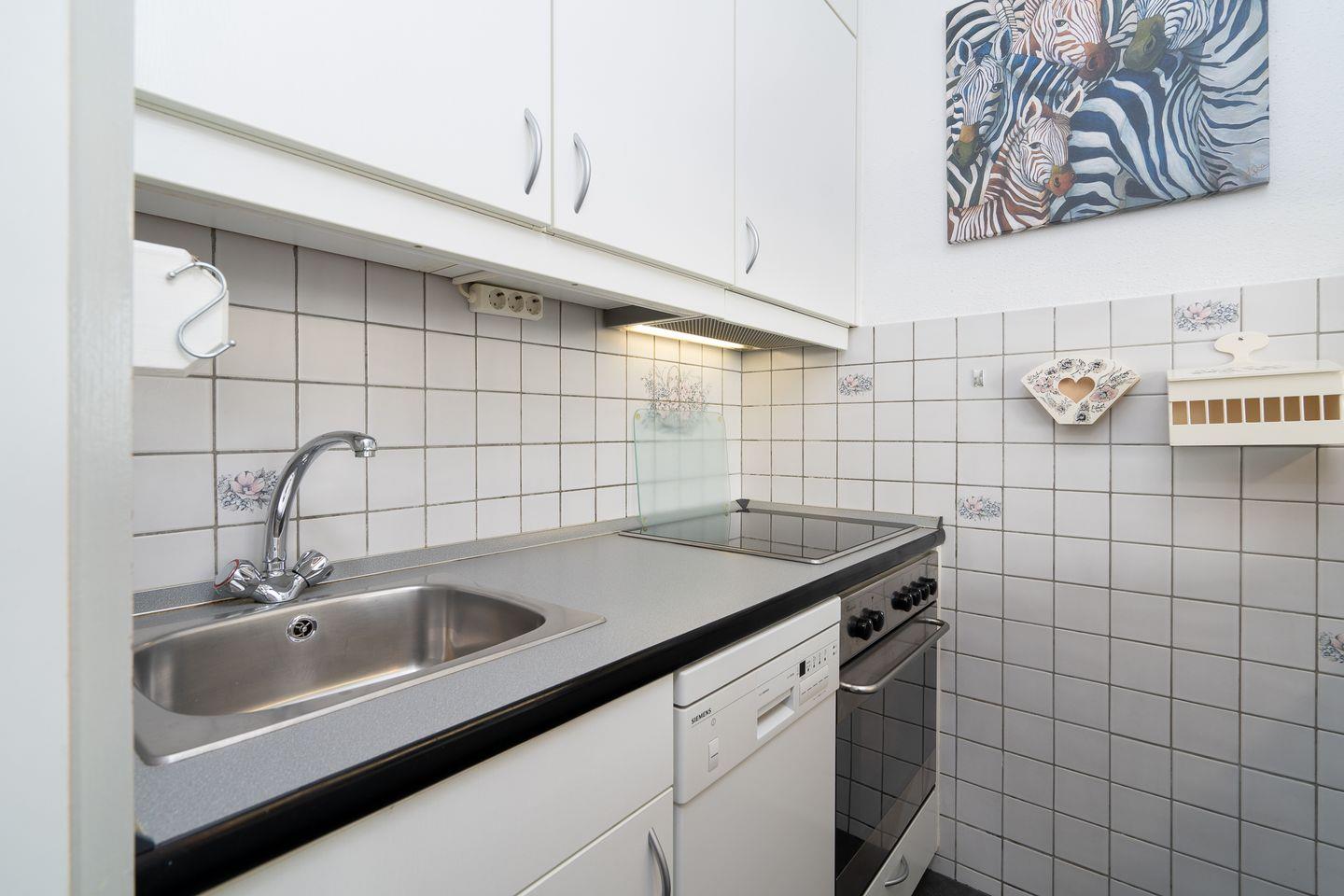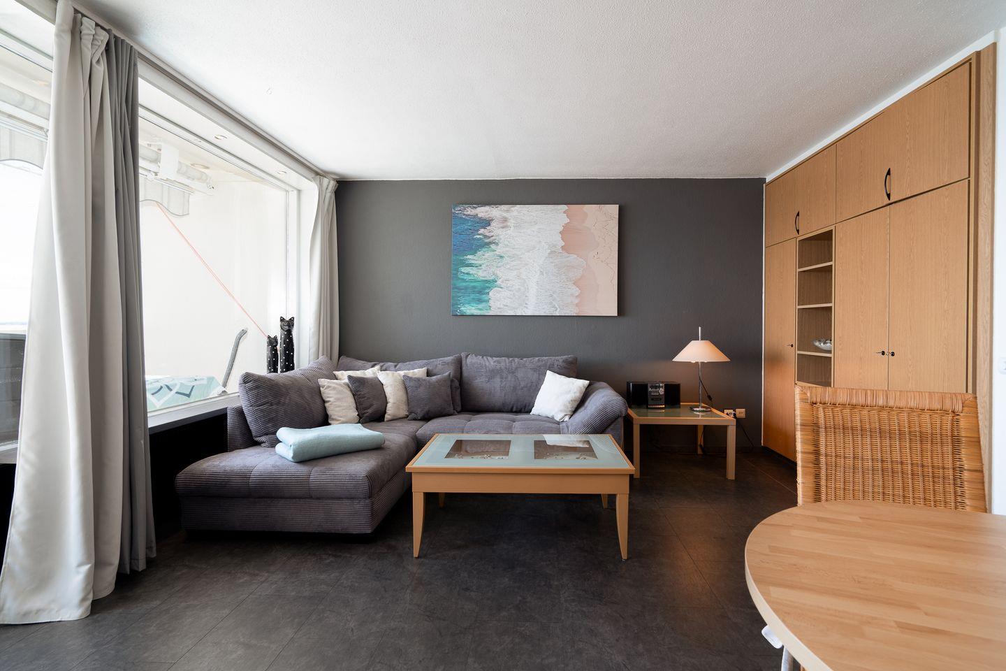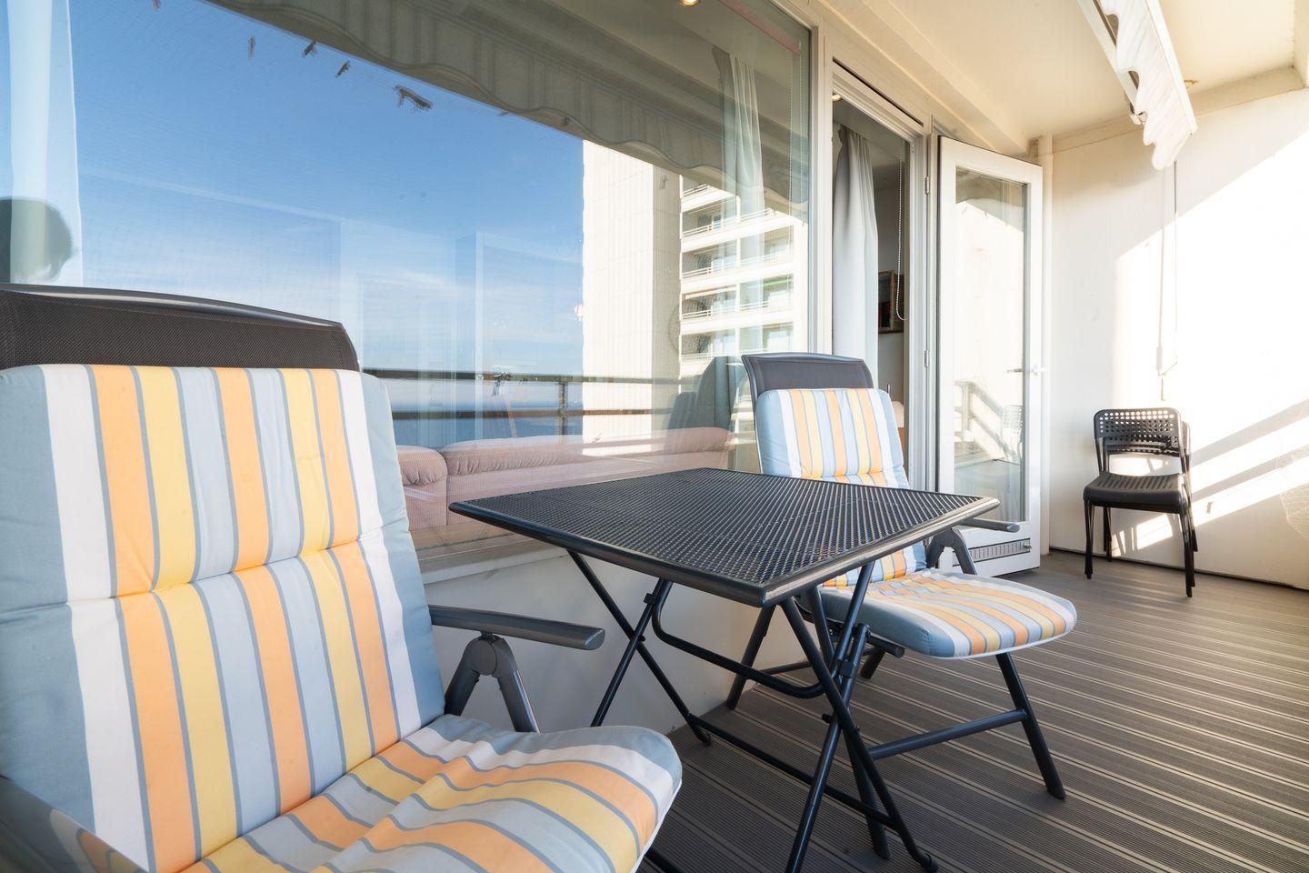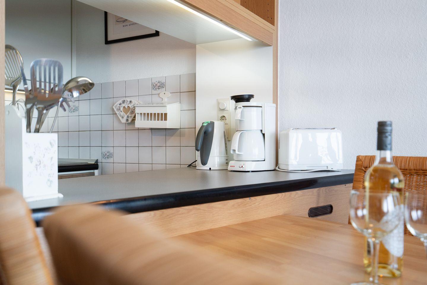 Diese 2-Raum-Ferienwohnung hat einen Balkon in Süd-Ost-Lage mit wunderbarem Blick auf die Ostsee. Vom kombinierten Wohn- und Essbereich haben Sie Zugang zum Balkon. Die Küche ist mit Spülmaschine, Backofen und Herd ausgestattet und mit einer Durchreiche zum Essbereich hin offen. Im Schlafraum stehen zwei Einzelbetten (je 90 cm x 200 cm), die man nicht zusammenschieben kann. Im Wohnbereich steht zudem eine Schlafcouch (160 cm x 200 cm). Es befindet sich ein Oberlicht zum Lüften im Duschbad. Zum Strand sind es nur wenige Fußschritte. PKW-Stellplatz inklusive.