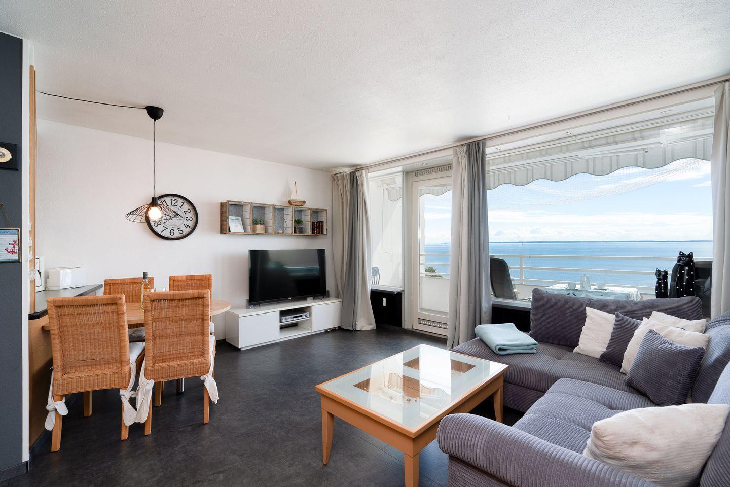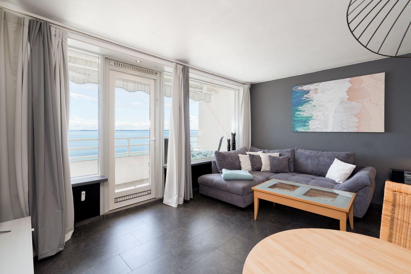 Die 2-Raum-Ferienwohnung "Küstenkind" Nr. 531 hat einen Balkon in Süd-Ost-Lage mit wunderbarem Blick auf die Ostsee. Vom kombinierten Wohn- und Essbereich haben Sie Zugang zum Balkon. Die Küche ist mit Spülmaschine, Backofen und Herd ausgestattet und mit einer Durchreiche zum Essbereich hin offen. Im Schlafraum stehen zwei Einzelbetten, die man nicht zusammenschieben kann. Im Wohnbereich steht zudem eine Schlafcouch. Duschbad mit Oberlicht zum Lüften. Zum Strand sind es nur wenige Fußschritte.
