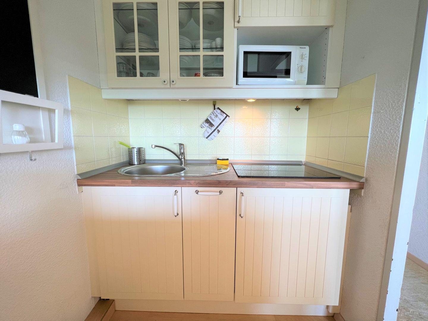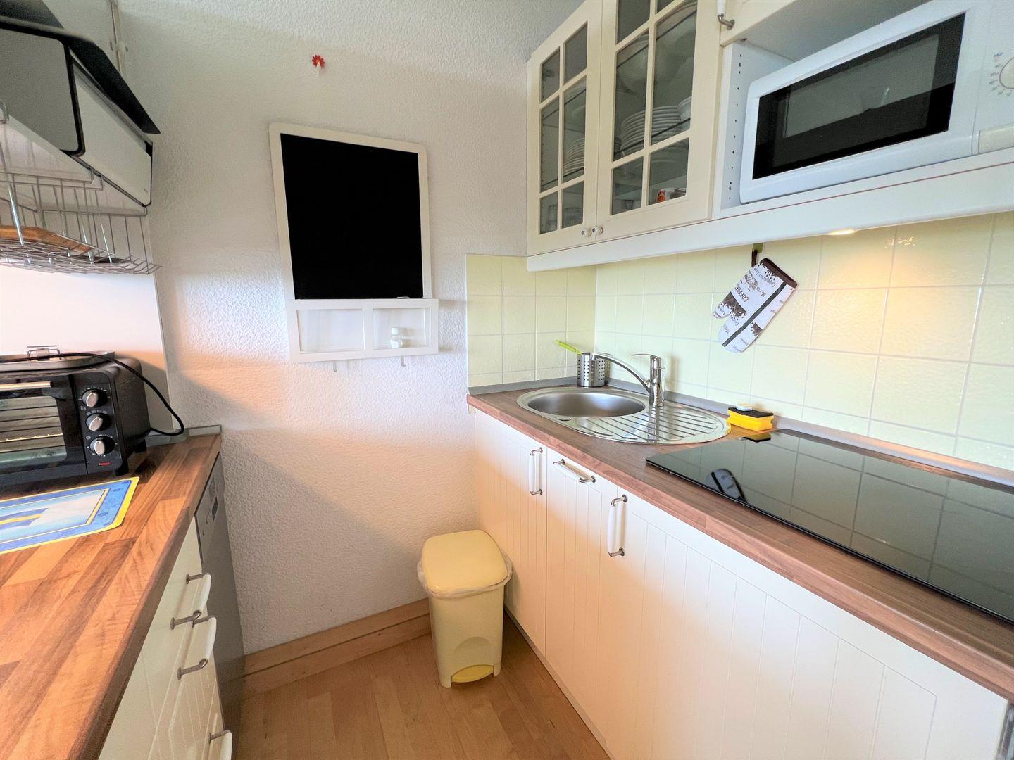 Die Wohnung befindet sich in sonniger Südlage im 9. Stock des Hauses A der Ferienanlage "Panoramic" in Sierksdorf. Die Ferienanlage liegt in unmittelbarer Nähe des Hansa-Parks und ist nur wenige Meter vom Strand entfernt. Vom Balkon aus haben Sie einen atemberaubenen Ausblick über die gesamte Lübecker Bucht bis hin nach Travemünde. Die kleine Küche ist mit Herd, Mikrowelle und Spülmaschine ausgestattet und mit einer Durchreiche zum kombinierten Wohn- und Essbereich hin offen. Im innenliegenden Schlafraum steht ein Bett (160 cm x 200 cm) und ein Kleiderschrank. Auf der Schlafcouch im Wohnbereich könnten zwei weitere Personen schlafen. Das weiß geflieste Duschbad ist innenliegend. PKW-Stellplatz inklusive.