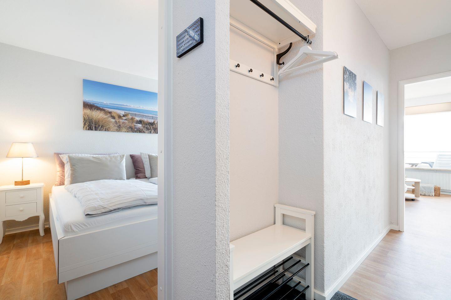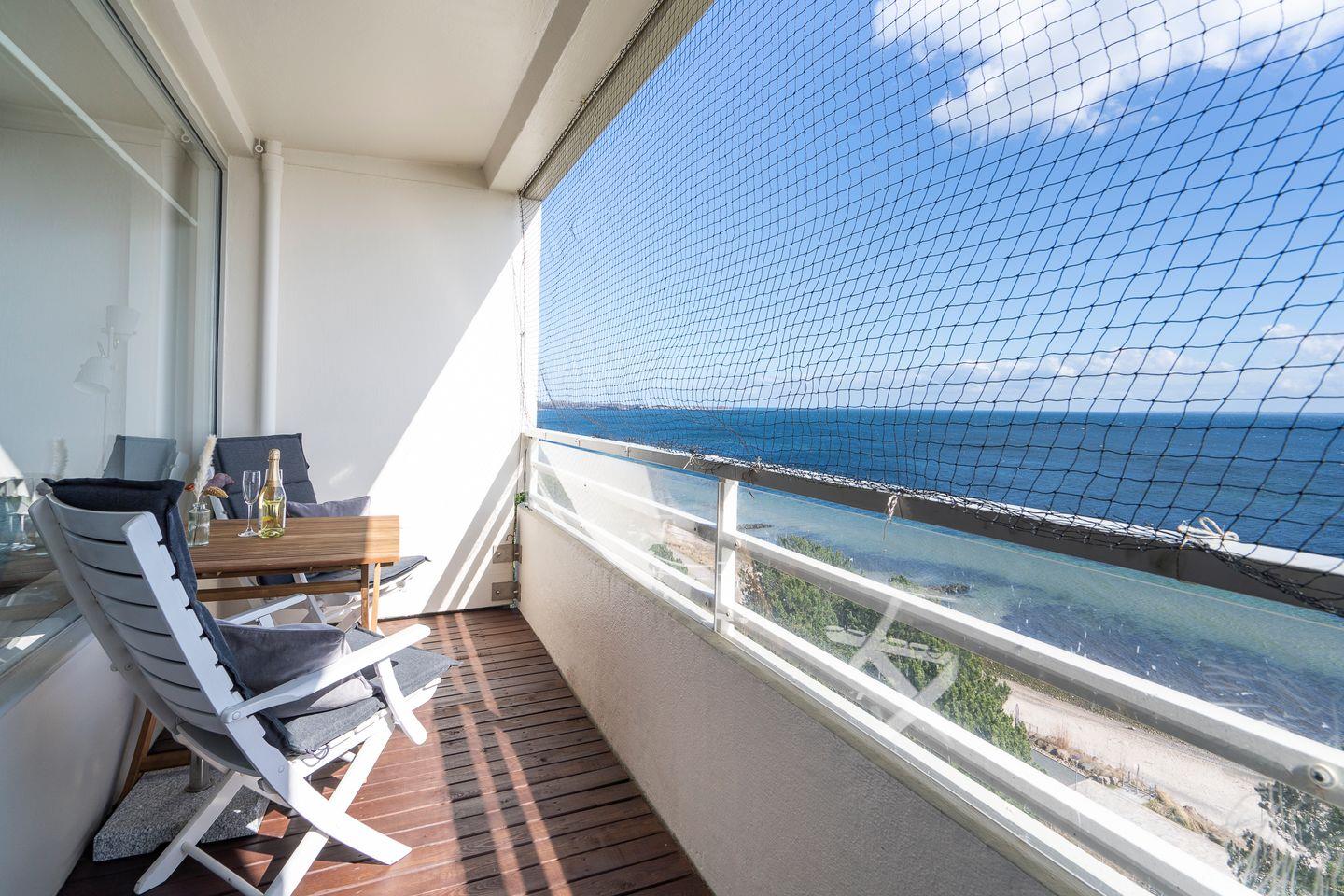 dieses im Jahr 2023 renovierte Feriendomizil befindet sich in der 6. Etage in 1. Reihe an der Ostsee. Vom gemütlichen und liebevoll eingerichteten Wohn- und Essbereich haben Sie Zugang zum Balkon mit herrlichem Ostseeblick. Die kleine, aber mit Spülmaschine, Backofen und Herd voll ausgestattete Küche ist offen zum Wohn-/Essbereich. Das Schlafzimmer hat ein Doppelbett (200 cm x 200 cm) und ein Fenster mit toller Sicht auf die Ostsee. Im Wohnzimmer steht ein Schlafsofa (120 cm x 200 cm). Das modernisierte Duschbad ist innenliegend. Zum Strand und zur Promenade sind es nur wenige Schritte. PKW-Stellplatz im Parkdeck, es führen Treppen von dort aus zur Wohnung. Über einen Seiteneingang gelangt man zum Fahrstuhl für ebenerdiges Be-und Entladen.