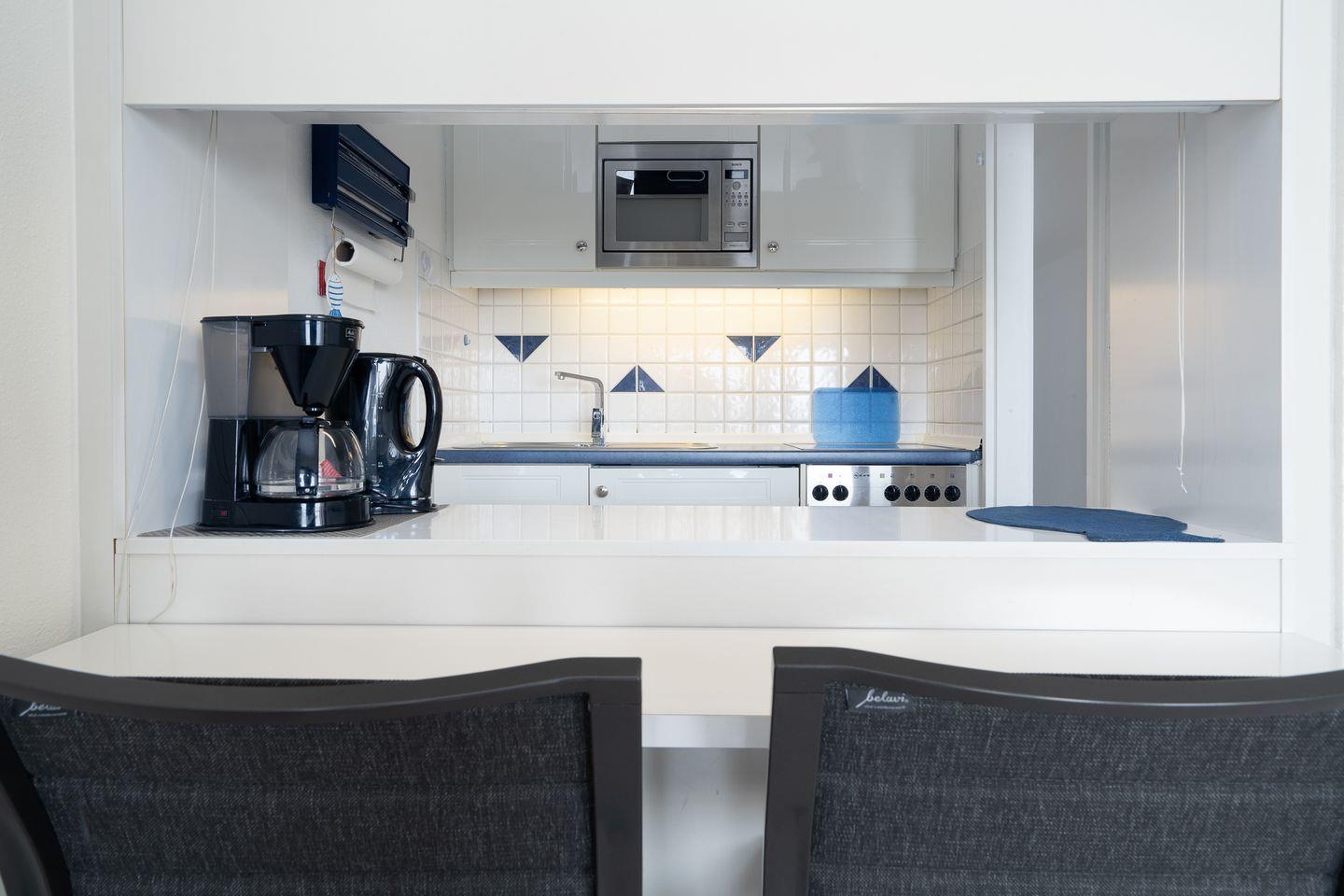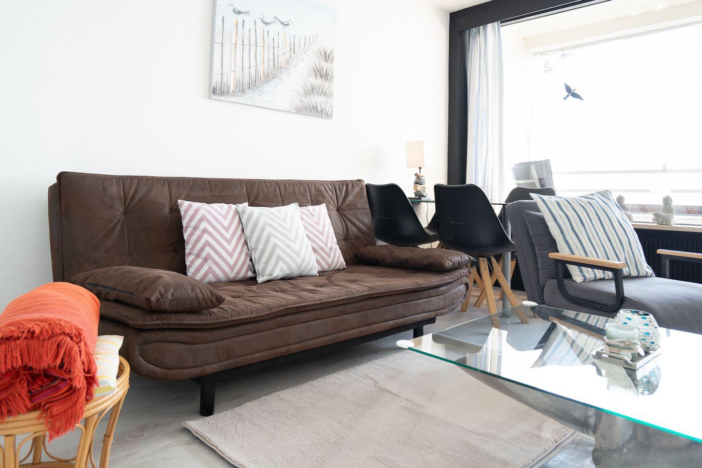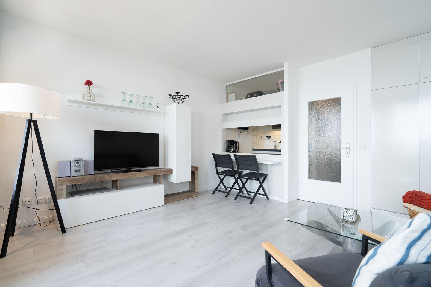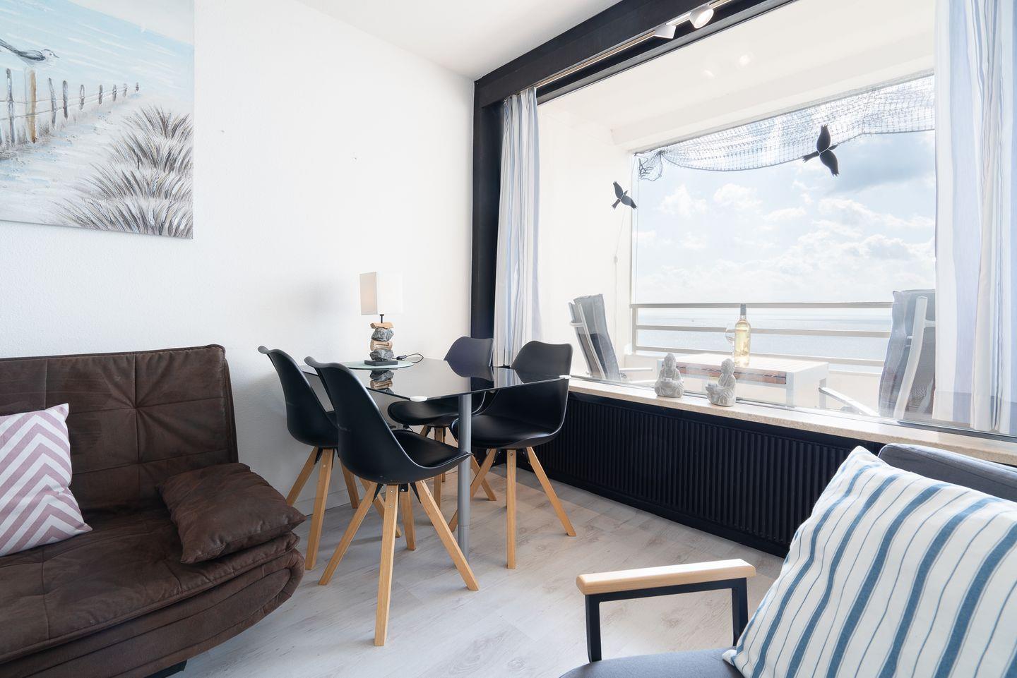 Die 2-Raum-Wohnung Nr. 530 befindet sich in der 5. Etage und hat einen tollen Blick über die Ostsee. Die Küche ist mit Backofen und Herd ausgestattet und mit einer Durchreiche zum gemütlichen Wohn-/Essbereich hin offen. Im Schlafzimmer finden Sie zwei Einzelbetten, die man nicht zusammenstellen kann. Im Wohnraum steht zudem ein Schlafsofa. Das innenliegende Badezimmer ist mit einer Dusche ausgestattet. Bis zum Strand sind es nur wenige Schritte.