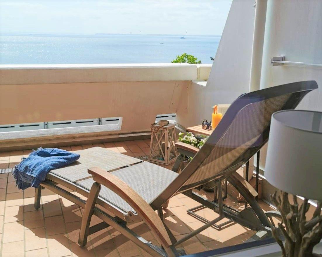 Eine Ferienwohnung für 4 Personen mit direkten Meerblick und großem Sonnen-Balkon für gehobene Ansprüche. Strandkorb inklusive!