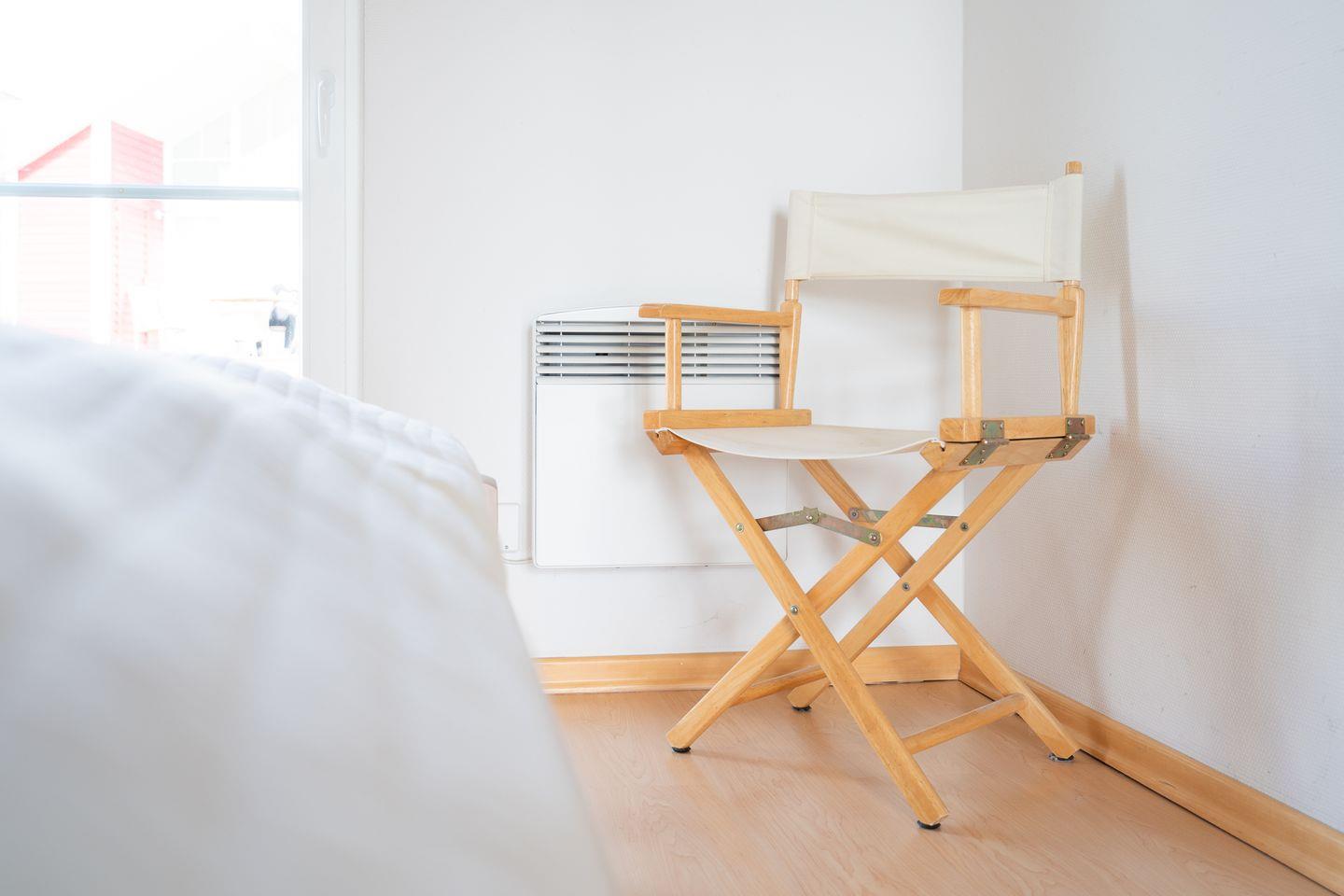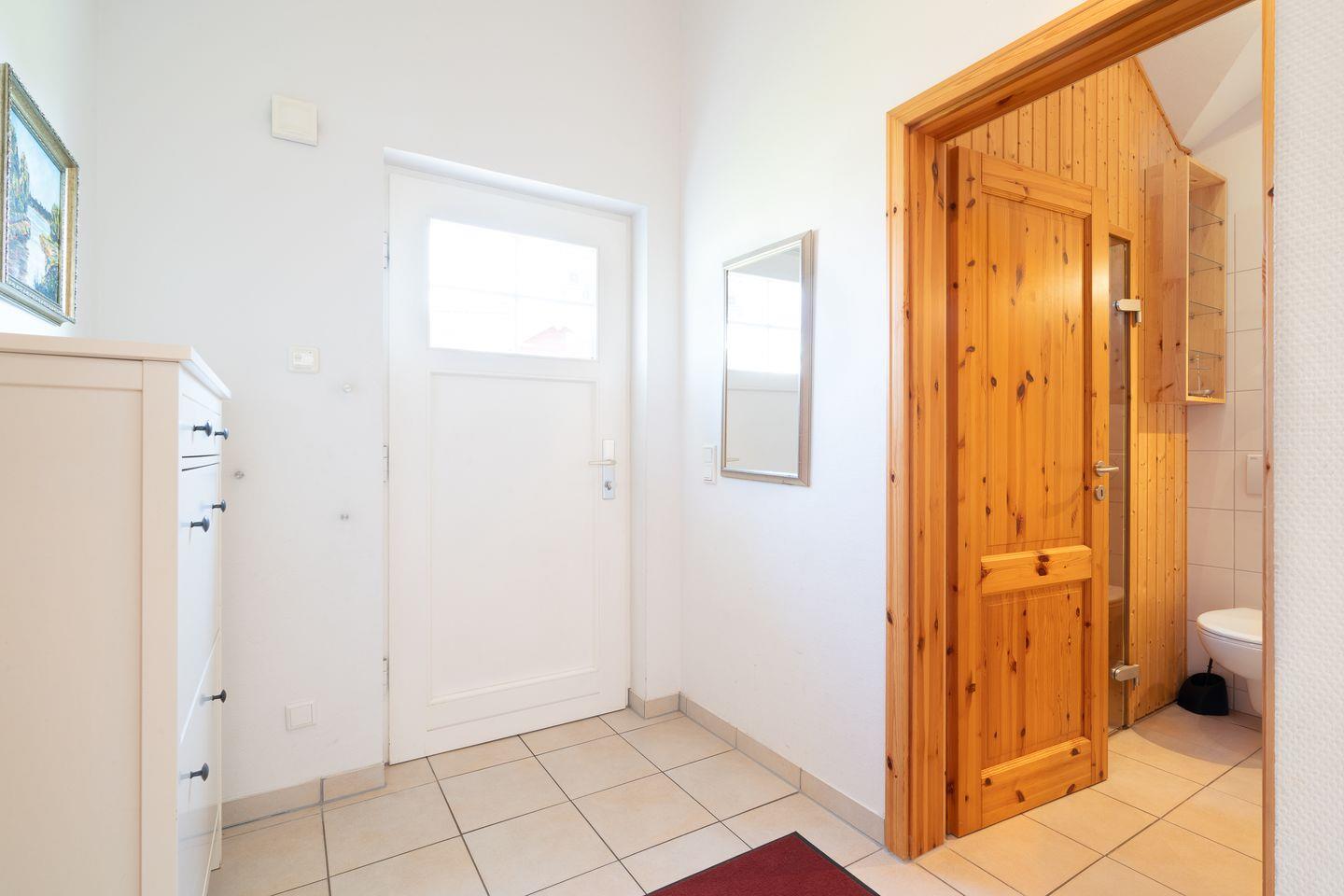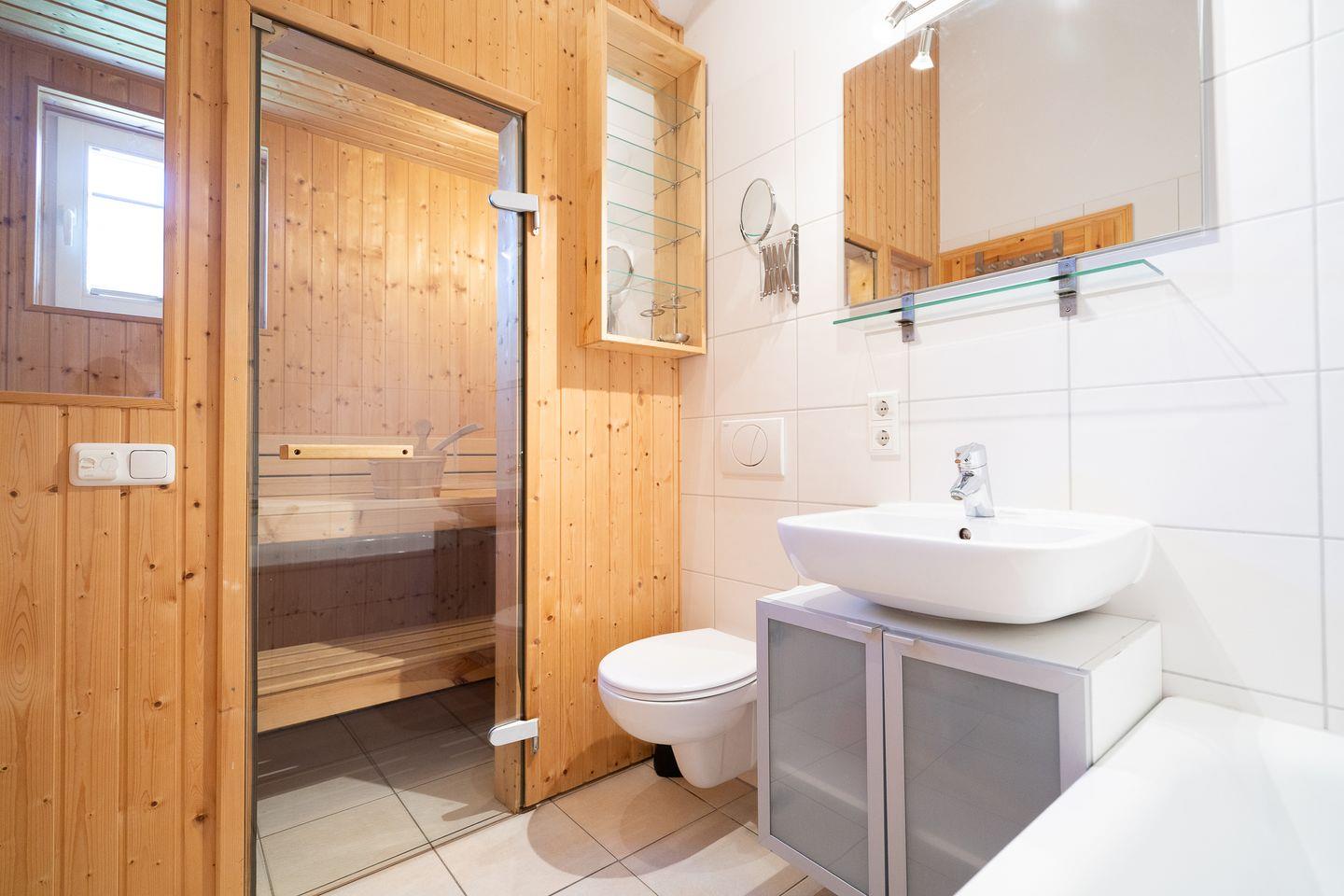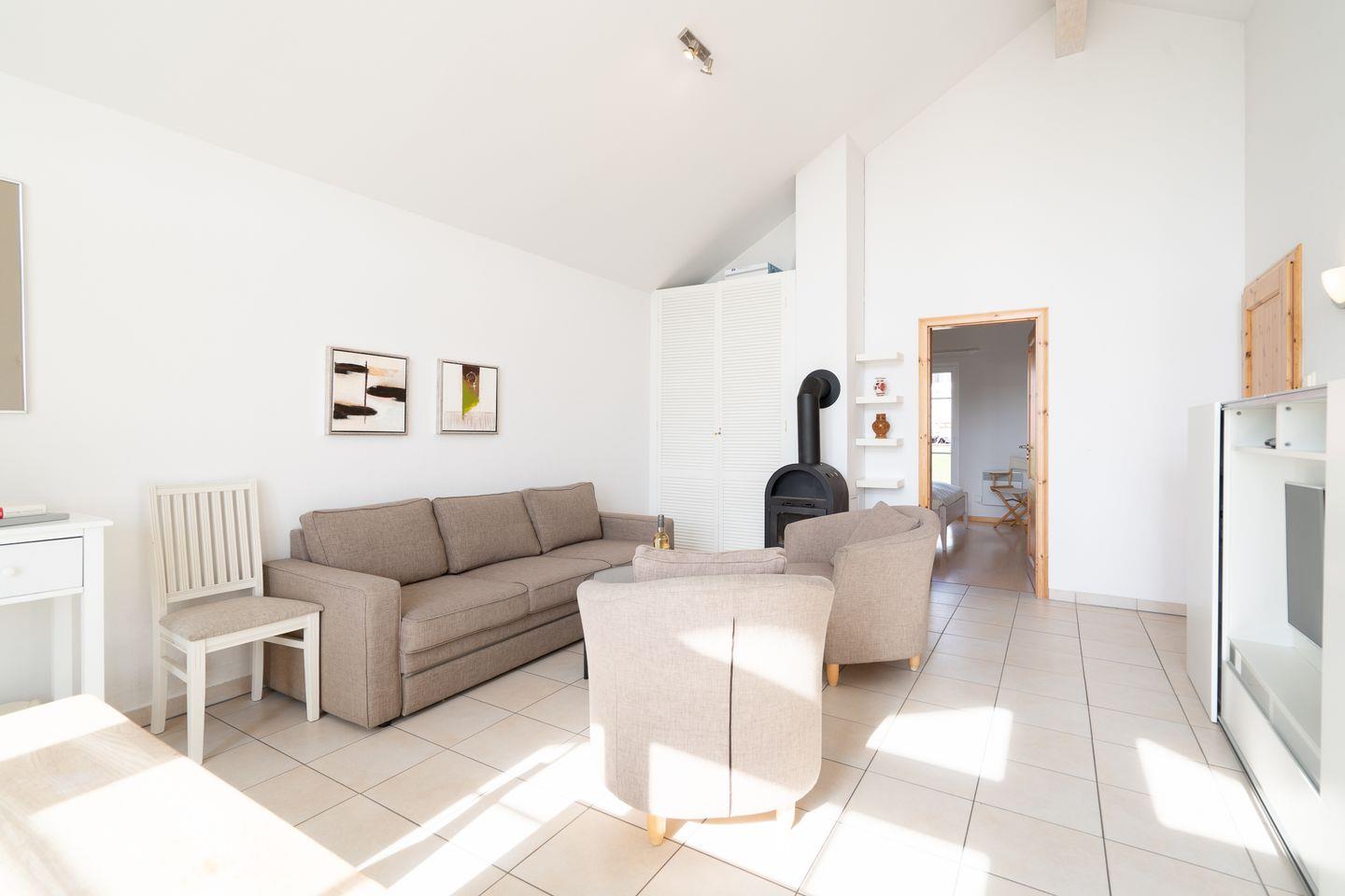 Auf einer Ebene stehen Ihnen ein Schlafraum und ein geräumiger Wohnraum mit Kamin und Zugang zur Terrasse mit Meerblick zur Verfügung, die Ostsee können Sie durch andere Häuser hindurch sehen. Die zum Essbereich hin offene, moderne Küche ist mit Geschirrspülmaschine, Herd und Mikrowelle voll ausgestattet. Der Kaminofen im Wohnbereich sorgt für gemütliche Stunden. Im Schlafraum steht ein Doppelbett. Im Bad finden Sie die Sauna, Waschmaschine, sowie eine Badewanne. Der Komfort einer eigenen Sauna wird sehr von unseren Wintergästen geschätzt. Die Beheizung erfolgt über Elektroheizungen und den Kamin.