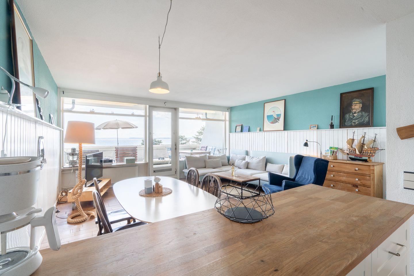 Die hübsche 3-Raum-Ferienwohnung ist ein wunderbares Domizil für die ganze Familie. Vom Balkon haben Sie einen schönen Blick auf die Ostsee. Der gemütlich Wohn-/Essbereich strahlt mit seiner stimmigen Einrichtung und maritimen Elementen Wohlfühlatmosphäre aus. Die Küche ist mit Spülmaschine, Herd und Mikrowelle ausgestattet und zum Essbereich offen. Im ersten Schlafzimmer steht ein Doppelbett, im zweiten ein Etagenbett. Das Duschbad ist innenliegend. Zum Strand sind es nur wenige Fußschritte.
