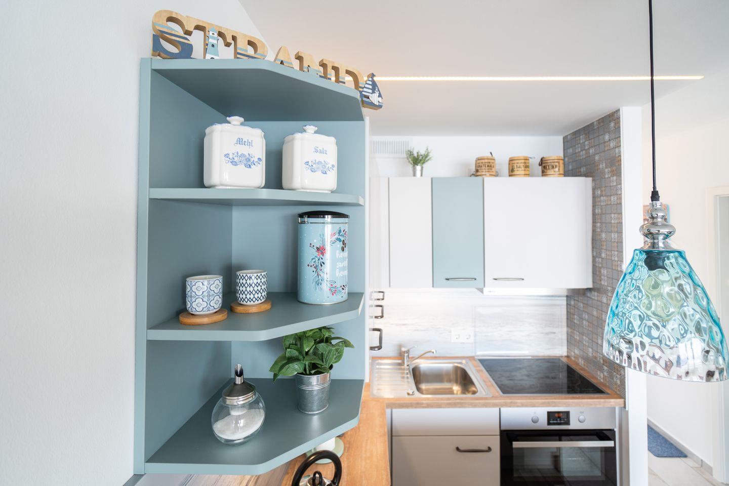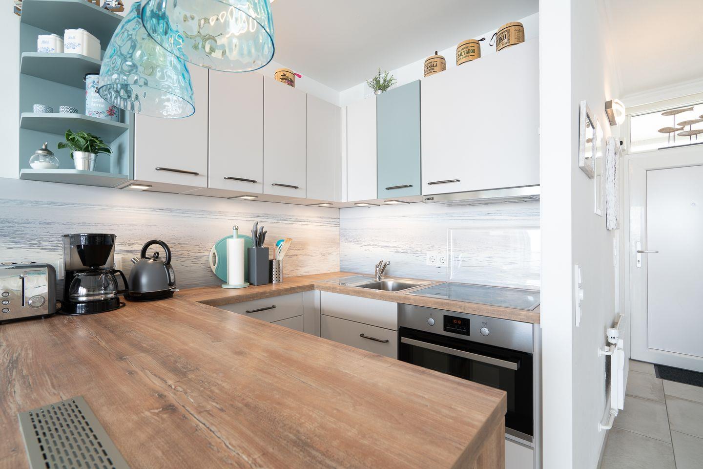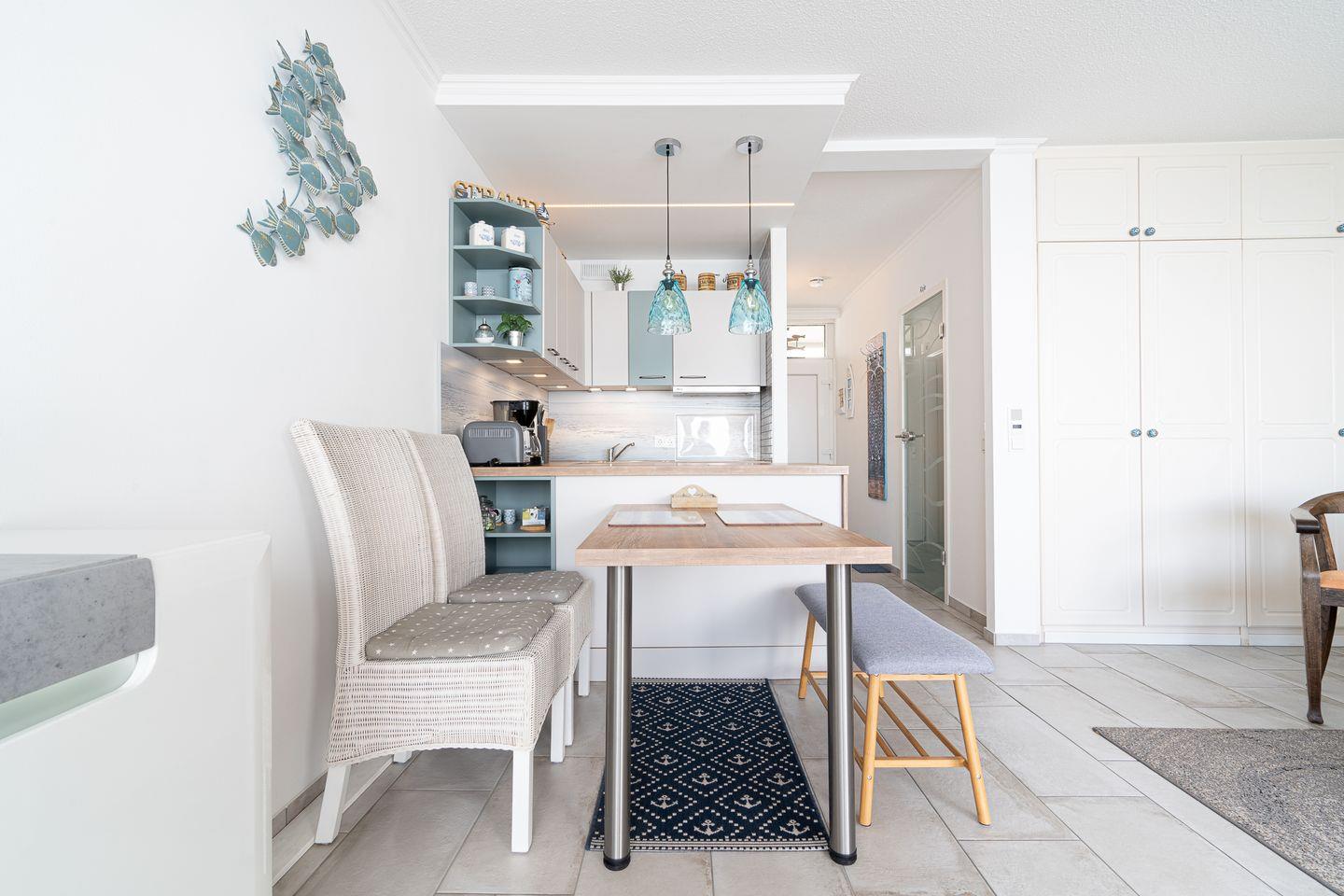 Obwohl es sich empfiehlt, die kulinarischen Highlights der Region in den vielen nahegelegenen Restaurants zu probieren, können auch in der Küche leckere Gerichte zubereitet werden. Die Küche ist mit Spülmaschine, Backofen und Herd ausgestattet und zum Wohn- und Essbereich hin offen. Das Schlafzimmer verfügt über ein komfortables Doppelbett (2x 90 cm x 200 cm). Das Bad mit Dusche ist innenliegend. Ohne eine Straße überqueren zu müssen, sind es zum Strand nur wenige Fußschritte. PKW-Stellplatz inklusive.