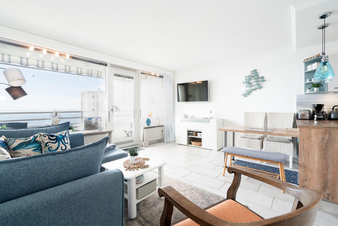 Die Ferienwohnung "Ostseeloge" bietet von der 10. Etage aus einen beeindruckenden Panoramablick über die Lübecker Bucht. Das gemütliche Wohnzimmer ist mit einer zum Relaxen geeigneten Polstergarnitur und einem großen Flachbildfernseher eingerichtet und verfügt über einen kleinen Essbereich. Die offene Küche ist mit Spülmaschine, Backofen und Herd ausgestattet. Das Schlafzimmer verfügt über ein komfortables Doppelbett. Das Duschbad ist innenliegend. Zum Strand sind es nur wenige Fußschritte.