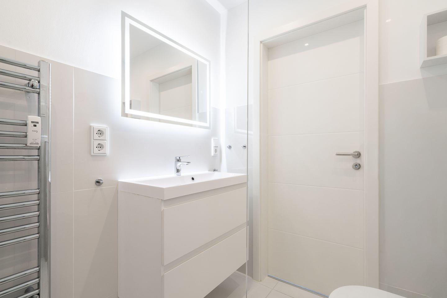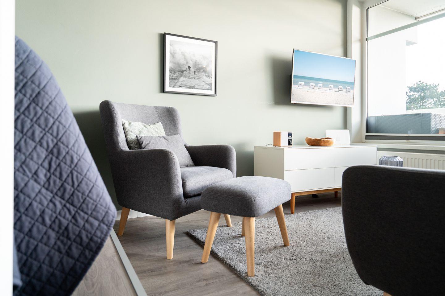Herzlich Willkommen in der 3-Raum-Ferienwohnung "Baywatch"! Diese schöne Wohnung liegt in der 1. Reihe der Flachbauten (2. Etage) und hat somit einen herrlichen Blick auf die Ostsee. Der gemütliche und stimmig eingerichtete Wohn- und Essbereich mit angrenzendem Balkon lädt zu entspannten Urlaubstagen ein. Ein bequemes Doppelbett (160 cm x 200 cm) steht optisch getrennt in einer Nische ebenfalls im Wohn- und Essbereich. Die moderne Küche ist mit Spülmaschine, Backofen und Herd ausgestattet und ist in den Wohn-/Essbereich integriert. Im Schlafzimmer stehen zwei Einzelbetten (jeweils 90 x 190 cm), die man nicht zusammenschieben kann. Die Wohnung verfügt über ein abgetrenntes Ankleidezimmer. Das hell geflieste und moderne Badezimmer hat eine bodentiefe Dusche und ist innenliegend. Ohne eine Straße zu überqueren sind es zum Strand nur wenige Fußschritte. PKW-Stellplatz inklusive. Ihre Fahrräder können Sie sicher in der zur Wohnung gehörenden Kellerbox abstellen.