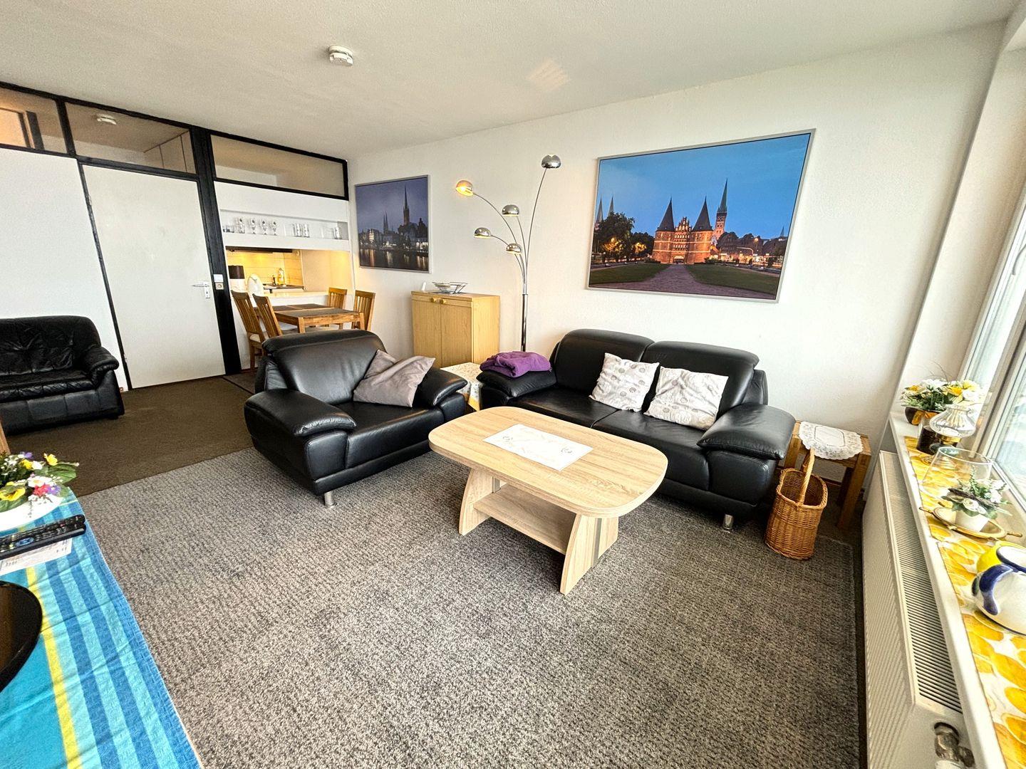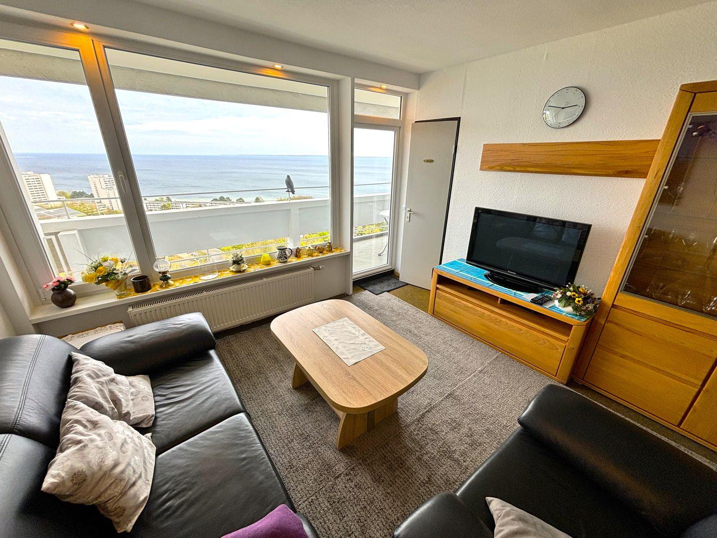 Die 3-Raum-Ferienwohnung liegt in der 17. Etage in der Apartmentanlage Panoramic. Vom Balkon haben Sie einen herrlichen Blick auf die Lübecker Bucht. Vom kombinierten Wohn- und Essbereich gelangen Sie in die beiden Schlafräume. Im ersten Schlafraum steht ein Doppelbett. Im zweiten Schlafraum steht ein Hochbett. Die kleine, einfache Küche mit Herd ist mit einer Durchreiche zum Wohn-/Essbereich offen. Das Wannenbad ist innenliegend. Zum Strand sind es nur wenige Minuten zu Fuß. WLAN inklusive.