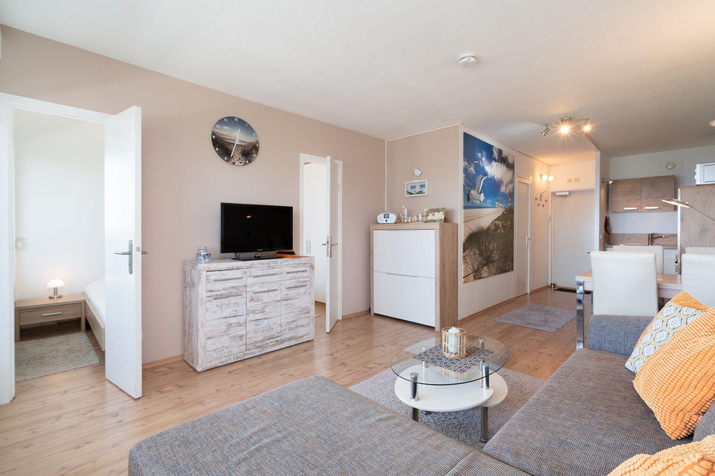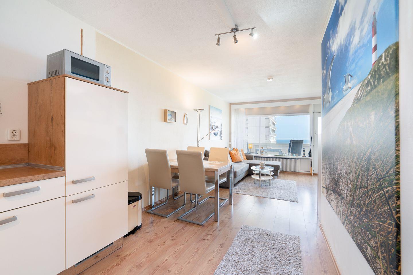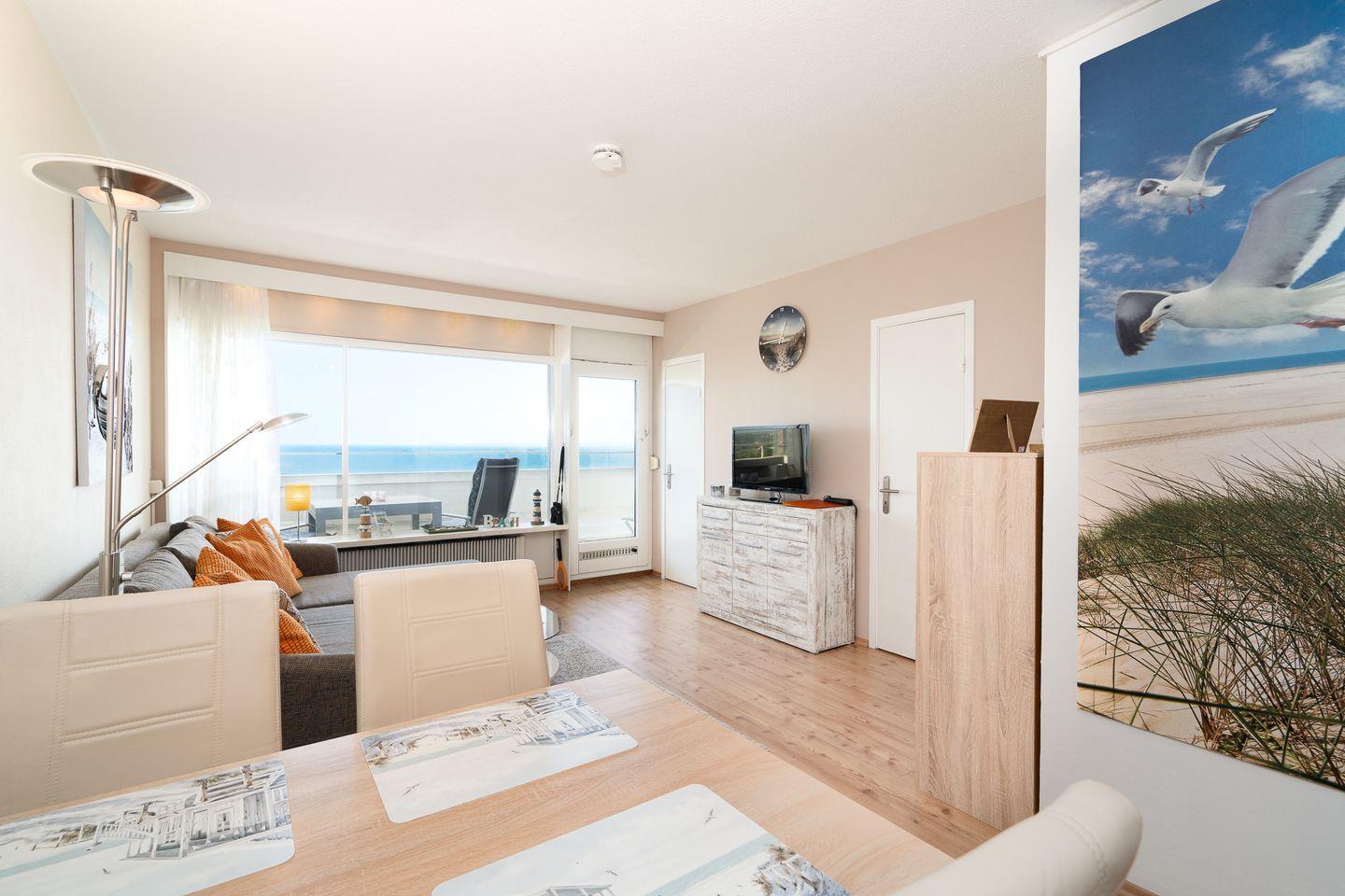 Die schöne 2-Raum-Ferienwohnung liegt in der 10. Etage in der Apartmentanlage Panoramic und ist für 4 Personen geeignet. Vom Balkon haben Sie einen wunderbaren Blick auf die Lübecker Bucht. Die mit Backofen, Herd und Spülmaschine ausgestattete Küche ist in den kombinierten Wohn- und Essbereich integriert. Im Schlafraum steht ein Doppelbett. Im Wohnbereich steht zudem ein Schlafsofa. Das Wannenbad ist innenliegend und verfügt über eine Waschmaschine. Zum Strand sind es nur wenige Minuten zu Fuß.