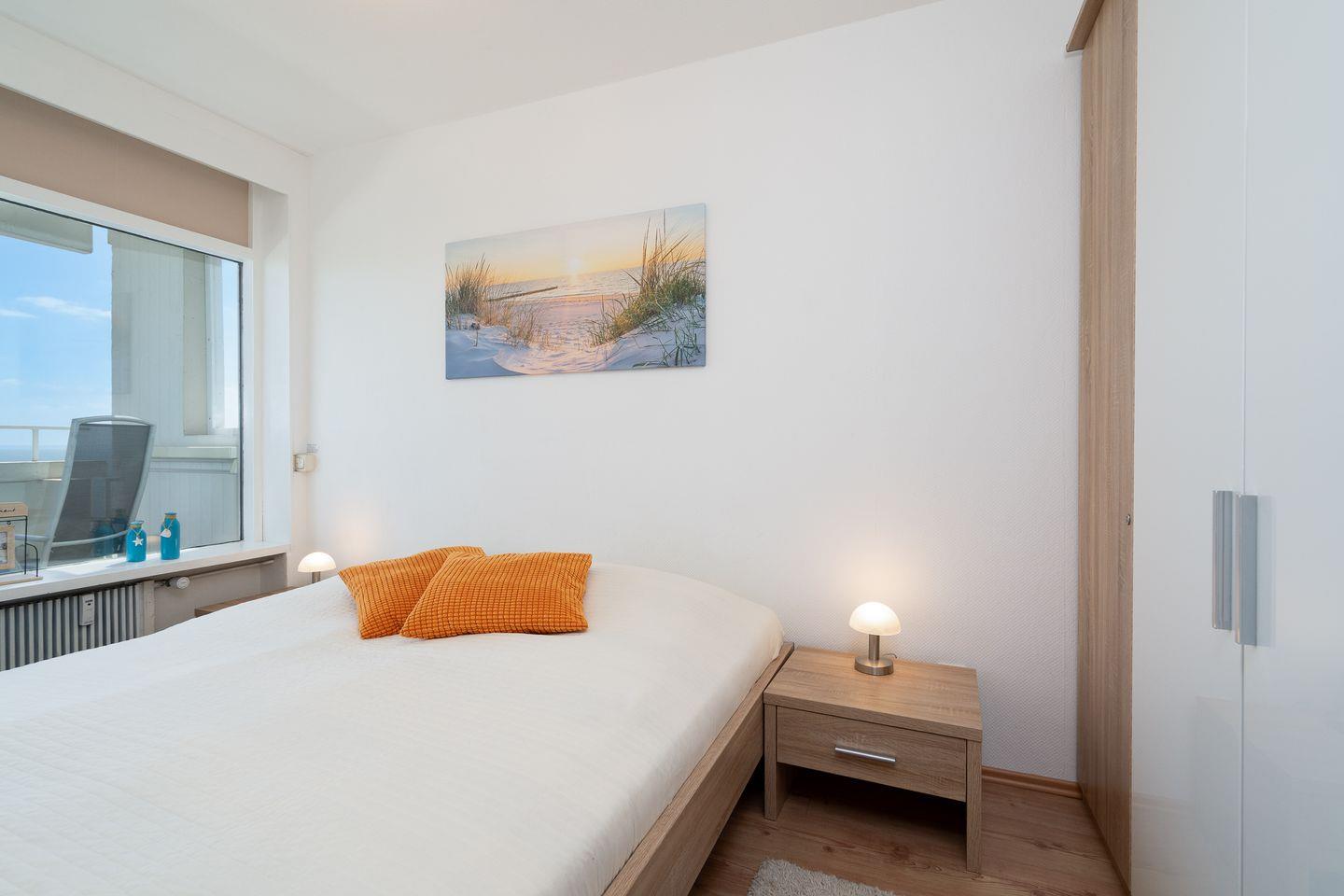 Die helle und schöne 2-Raum-Ferienwohnung liegt in der 10. Etage in der Apartmentanlage Panoramic. Vom Balkon haben Sie einen wunderbaren Blick auf die Lübecker Bucht. Die mit Backofen, Herd und Spülmaschine ausgestattete Küche ist in den kombinierten Wohn- und Essbereich integriert. Im Schlafraum steht ein Doppelbett, auch von hier haben Sie durch das Fenster Blick auf die Ostsee – Aufwachen und das Meer sehen, so kann der Tag beginnen! Im Wohnbereich steht zudem ein Schlafsofa, so dass die Wohnung für vier Personen geeignet ist. Das Bad ist innenliegend und verfügt über eine Badewanne und eine Waschmaschine. Zum Strand sind es nur wenige Minuten zu Fuß. PKW-Stellplatz inklusive.