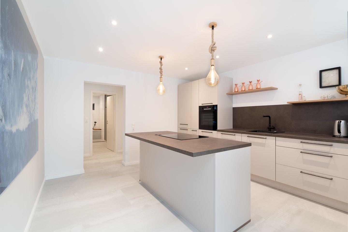 Das bequeme Boxspringbett (180 cm x 200 cm) sorgt für erholsamen Schlaf. Das moderne und stilvolle Badezimmer mit einem Doppelwaschbecken, Dusche und Badewanne runden die exklusive Ausstattung ab. Zum Strand sind es nur wenige Gehminuten. PKW-Stellplatz inklusive.