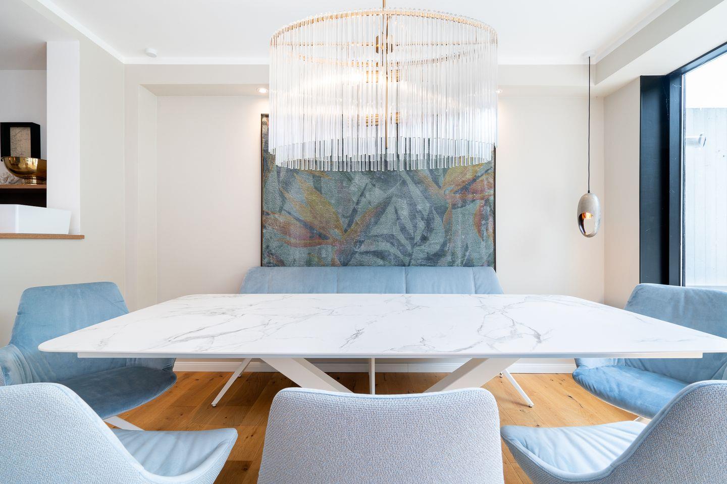 Diese außergewöhnliche 2-Raum-Ferienwohnung mit großer Rundum-Terrasse liegt in der 3. Etage in der Apartmentanlage Panoramic und sorgt für ein besonderes Urlaubserlebnis. Bei der Einrichtung der großzügigen Wohnung wurde auf hochwertige und geschmackvolle Materialien und Möbel geachtet. Die riesige Terrasse mit elektrischen Markisen ist mit mehreren Sitz- und Verweilmöglichkeiten möbliert, so dass Sie der Sonne den Tag über folgen können. Eine kleine Sauna finden Sie ebenfalls auf der Terrasse zu Ihrer exklusiven Nutzung. Genießen Sie auf der gemütlichen Sofalandschaft mit Blick auf den Ethanol-Kamin das besondere Wohlfühl-Ambiente. Die edle und voll ausgestattete Küche mit Kücheninsel verfügt über Backofen, Herd, Mikrowelle und Spülmaschine und macht richtig Lust auf Kochen. Am großzügigen Esstisch können Sie im Anschluss entspannt Ihre Mahlzeiten genießen.
