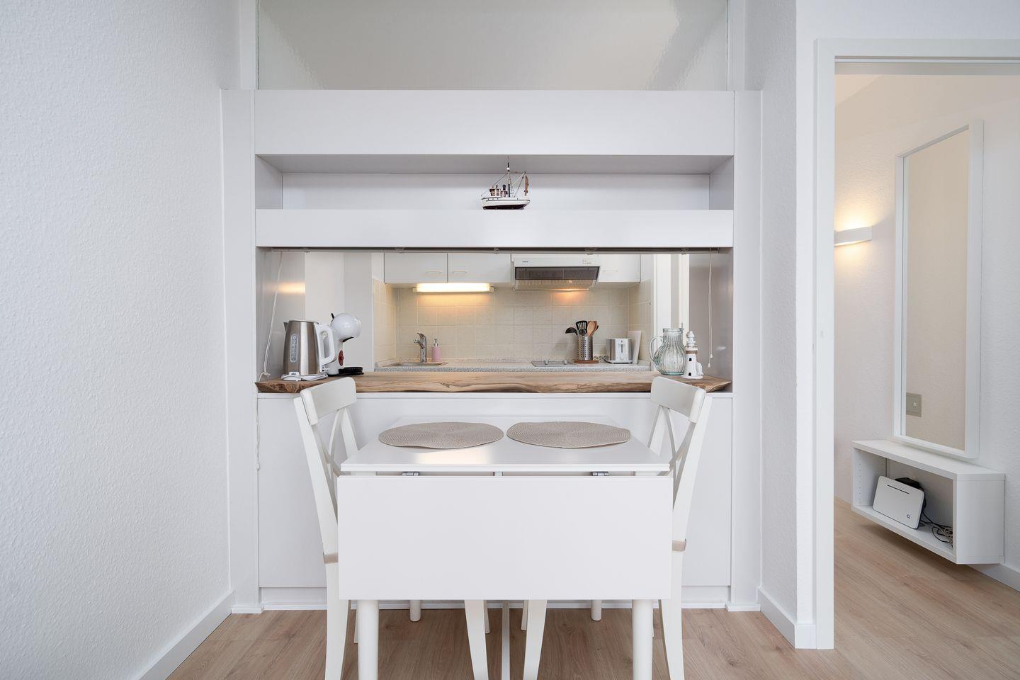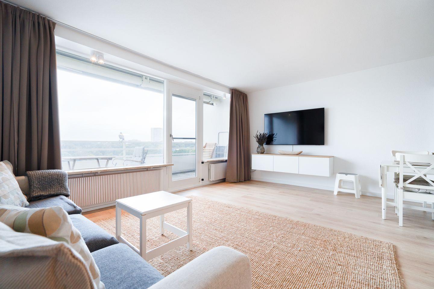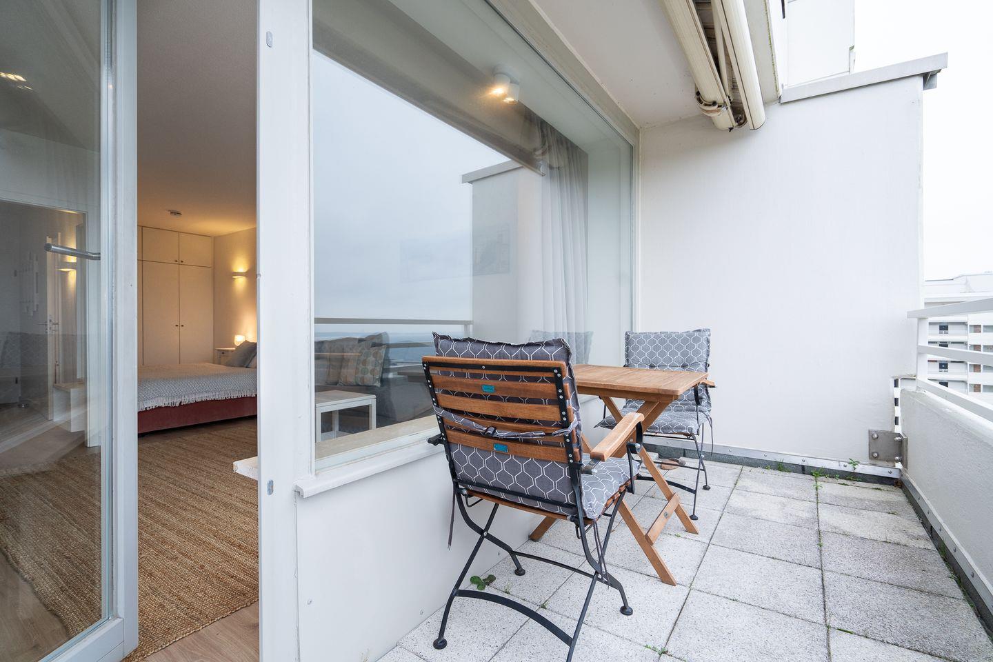 In dieser schönen und hellen 1-Raum-Ferienwohnung können Sie sich wohlfühlen. Vom Balkon haben Sie von der 10. Etage aus einen wunderbaren Blick über die Lübecker Bucht. Die Wohnung ist für bis zu 4 Personen ausgestattet. Das bequeme Doppelbett ist optisch vom Wohnbereich abgetrennt. Das Sofa hat eine Schlaffunktion. Die kleine Küche ist mit einer Durchreiche zum Wohnbereich und zum Esstisch hin offen. Das Duschbad ist innenliegend.