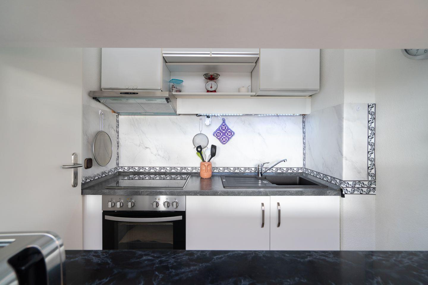 Mit einer Größe von 50 m² und einem durchdachten Grundriss verfügt die Wohnung über insgesamt drei Zimmer und bietet bis zu vier Schlafmöglichkeiten. Sie finden zwei einladende Schlafzimmer vor, einmal mit einem französischem Doppelbett (140 x 200 cm) und mit zwei Einzelbetten (90 x 190 cm) die für eine erholsame Nachtruhe sorgen. Zudem bietet die Unterkunft ein modernes Badezimmer mit Dusche, Waschbecken und WC.