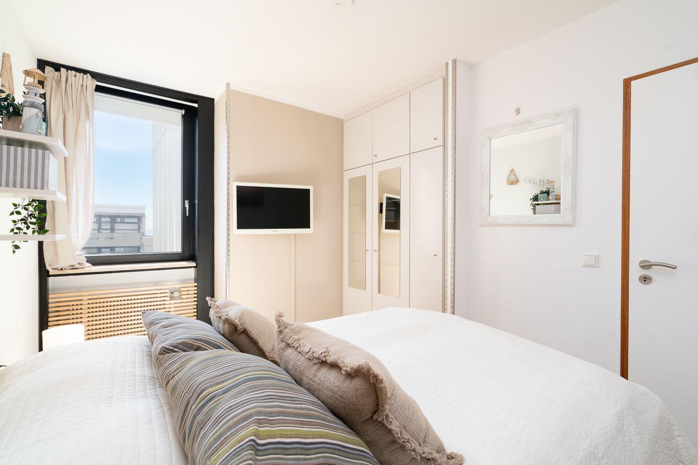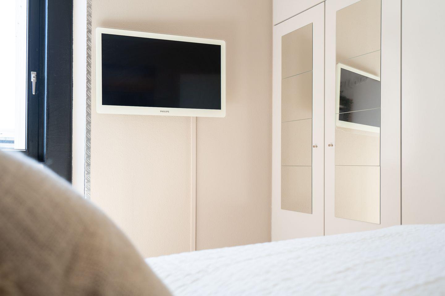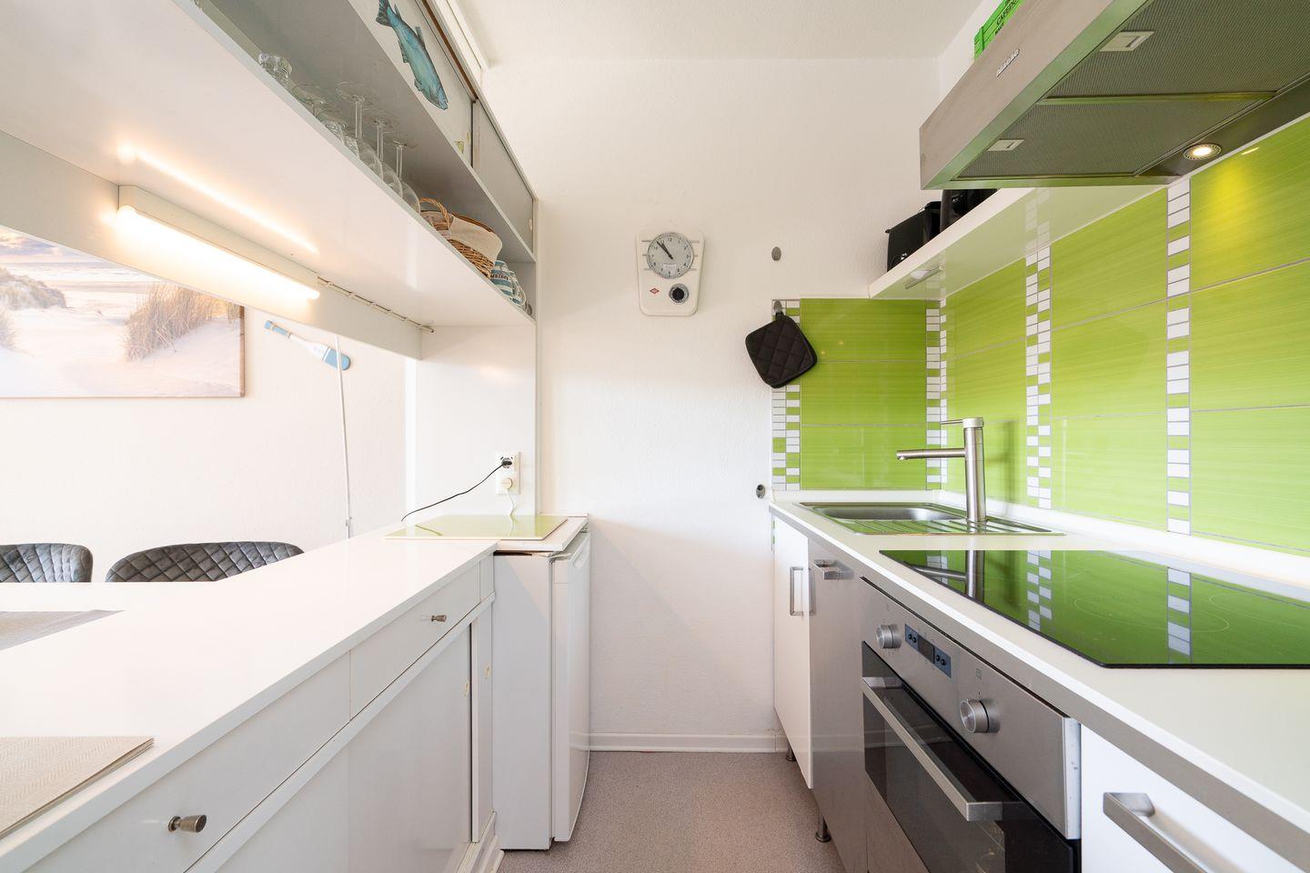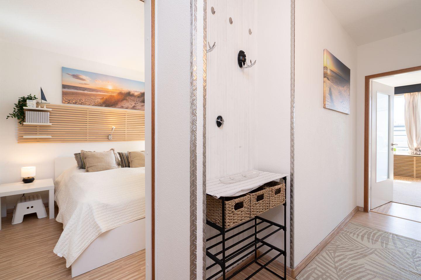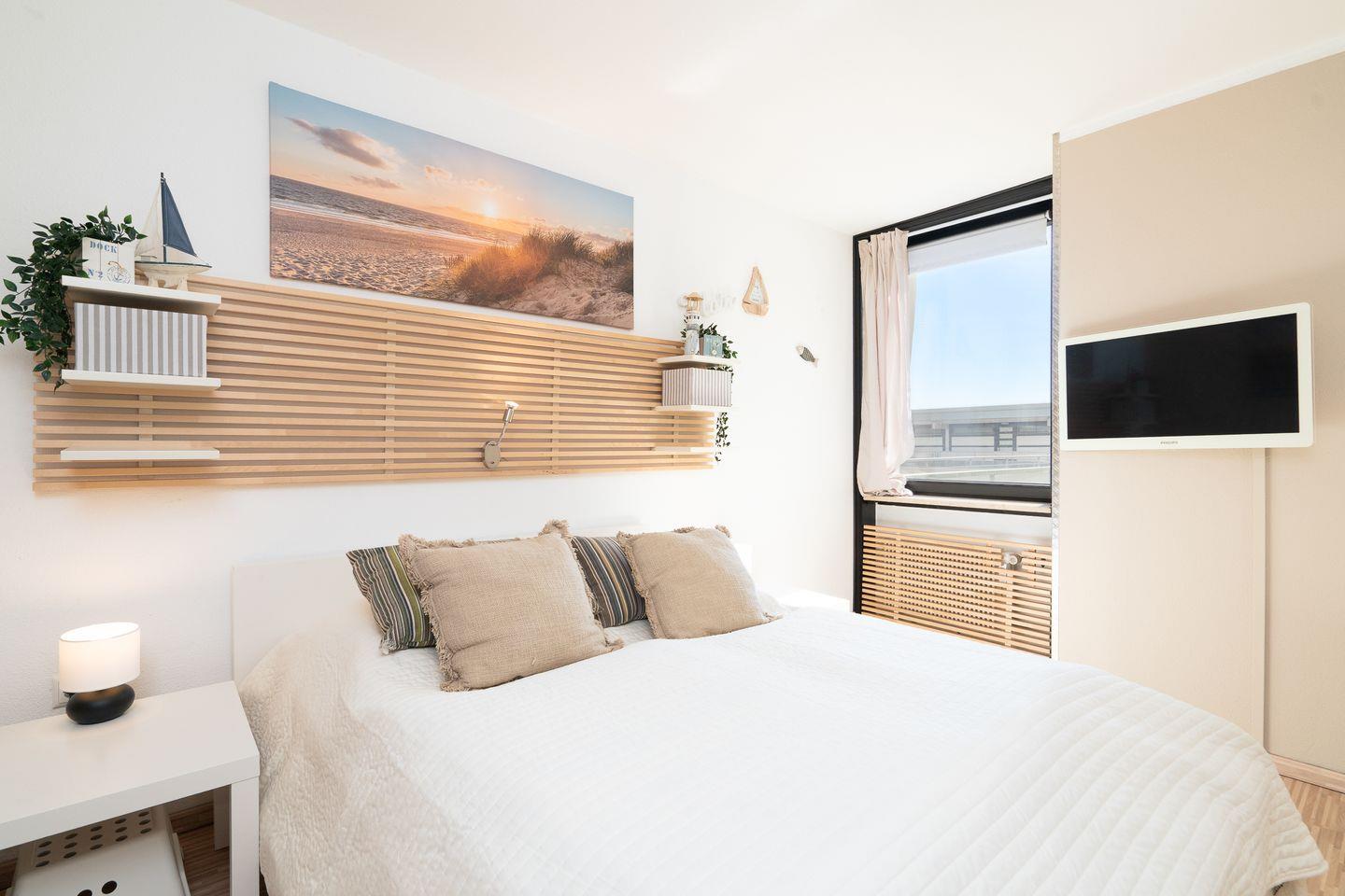 Die Unterkunft ist modern und geschmackvoll ausgestattet. Ein französisches Doppelbett (140 cm x 200 cm) im Schlafzimmer mit Fenster und zusätzlichem Fernseher bietet erholsamen Schlaf, während das geräumige Wohnzimmer mit einem Schlafsofa (160 cm x 200 cm) zum Entspannen einlädt. Der Fernseher mit einer Bildschirmgröße von 35 bis 44 Zoll, Radio und WLAN sorgen für gute Unterhaltung. Die offene Küche ist mit allen erforderlichen Geräten und Utensilien ausgestattet, darunter Cerankochfeld, Backofen, Kühlschrank mit Gefrierfach, Spülmaschine, Wasserkocher, Toaster und Kaffeemaschine. Der Essbereich ist direkt angrenzend eingerichtet und ermöglicht Mahlzeiten in gemütlicher Atmosphäre. Das Badezimmer verfügt über eine Badewanne und ist innenliegend. Zur weiteren Ausstattung zählt ein Balkon, auf dem Sie die frische Meeresluft genießen können. Balkonmöbel und Sonnenschutz sind vorhanden. Ein PKW-Stellplatz ist inklusive. Zum Strand sind es nur wenige Schritte.