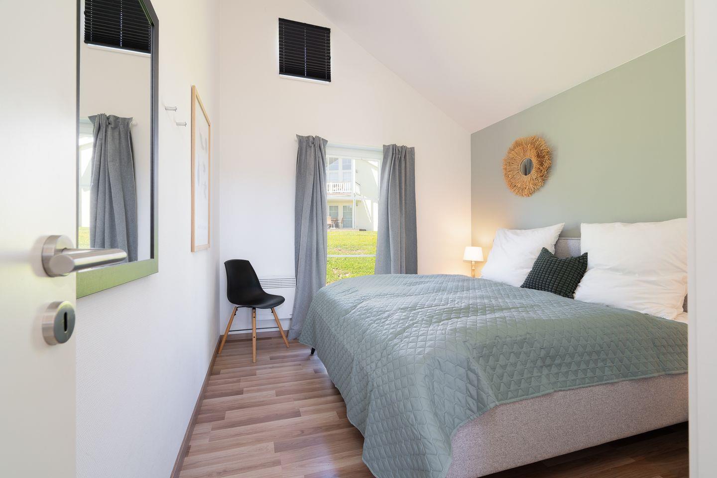 Im Inneren erwarten Sie drei gut geschnittene Zimmer mit 5 Schlafplätzen, darunter zwei separate Schlafzimmer und ein großzügiger Wohn- und Essbereich. Im ersten Schlafzimmer steht ein bequemes Doppelbett (2x 90 x 200 cm). Im zweiten Schlafzimmer stehen jeweils Einzelbetten (je 80 x 200 cm). Highlight des Zimmers ist der Schlafalkoven, zu dem Sie über eine schmale Treppe gelangen. Für den Komfort der kleinen Gäste stehen ein Babybett und ein Hochstuhl zur Verfügung. Sämtliche Fenster sind mit Sichtschutz versehen, sodass Sie jederzeit Privatsphäre und ein angenehmes Wohnklima genießen.
