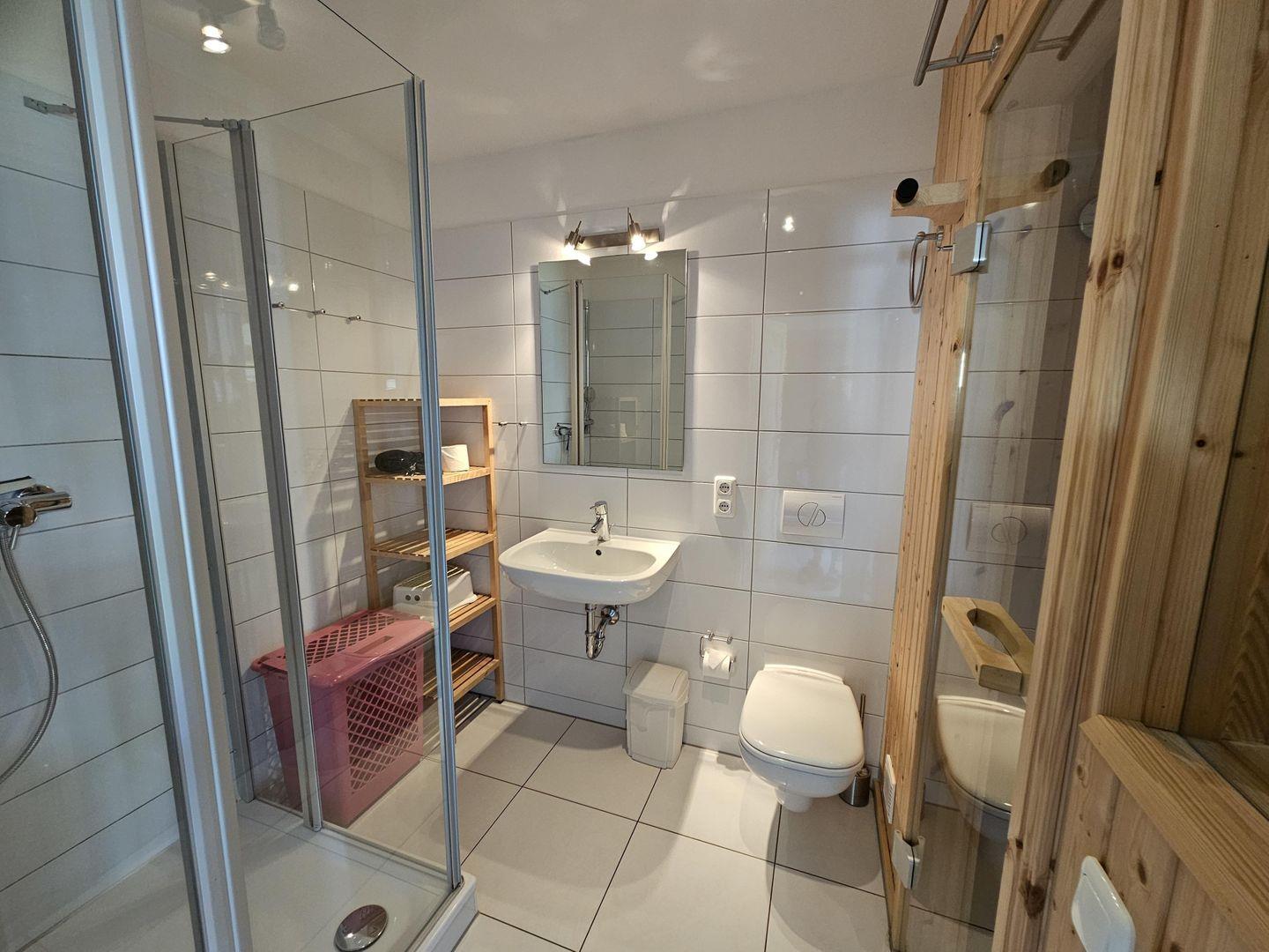 Modern eingerichtete Wohnung mit Kamin und eigener Sauna für die gemütlichen Stunden.