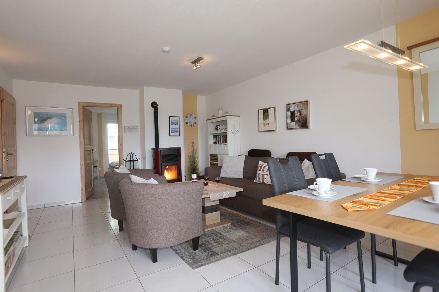 Die Wohnung "Meerkieker" App 28 befindet sich im Erdgeschoß eines Quatrohauses im Hansapark-Resort. Die sehr schön gestaltete Wohnung verfügt über zwei Schlafzimmer (1 x Boxspringbett als Doppelbett und 1 x 2 Boxspringbetten als Einzelbetten), eine offene Küche mit kombiniertem Wohn- und Essbereich, Pelletofen, Duschbad und mit eigener Sauna für z.Bsp. einen entspannten Wellnesstag. Ein grosser neuer Esstisch mit vier neuen bequemen Stühlen laden zu einem ausführlichen Frühstück ein. Auch ein neuer Wohnzimmertisch fügt sich elegant in den gemütlichen Wohnbereich ein. Ein neuer großer Flachbildschirm, der an der Wand befestigt ist, wird Ihnen unterhaltsame Stunden bereiten.
