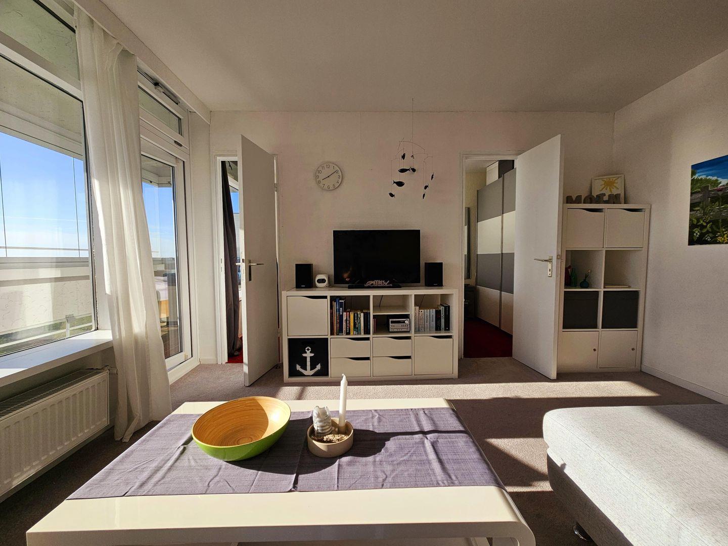 Diese charmant eingerichtete ca. 41 m² große 2-Zimmer Ferienwohnung mit verglastem - zu öffnendem - Balkon für 2 Personen liegt in der 12. Etage der Panoramic-Anlage im Haus A. Der Fahrstuhl bringt Sie bequem zu Ihrer Wohnung. Beim Betreten der Wohnung empfängt Sie bereits der atemberaubende Meerblick.