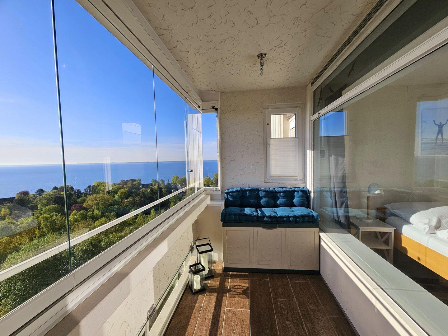 Von Ihrem verglasten, überdachten Balkon haben Sie einen traumhaften direkten Blick über die Lübecker Bucht.