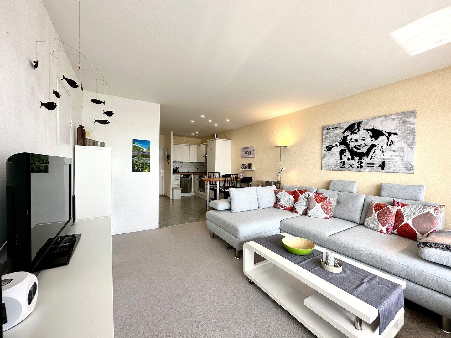 Auf dem gemütlichen Ecksofa im Wohnzimmer können Sie es sich nach einem erlebnisreichen Tag so richtig gemütlich machen und den Ausblick geniessen.