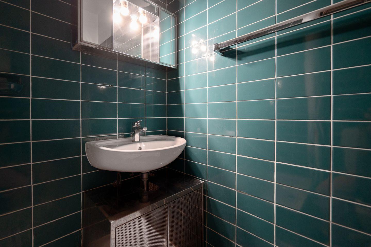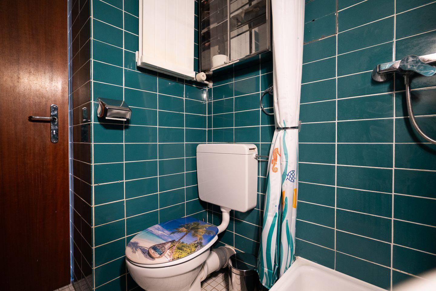 Das Badezimmer ist mit einer Dusche, Waschbecken, Spiegel und WC praktisch ausgestattet und innenliegend.