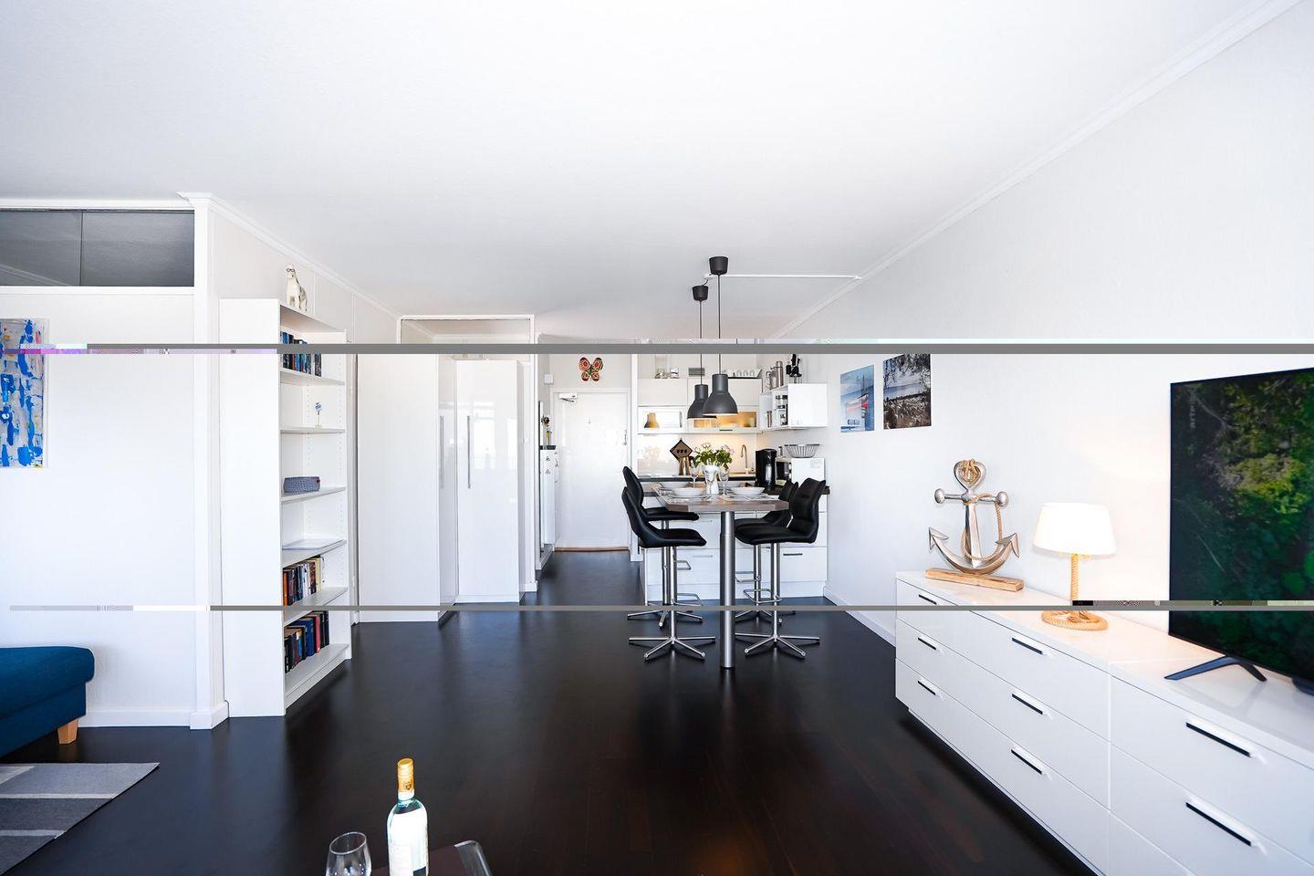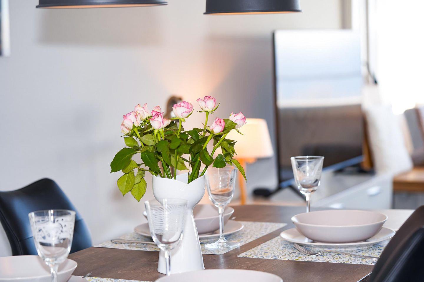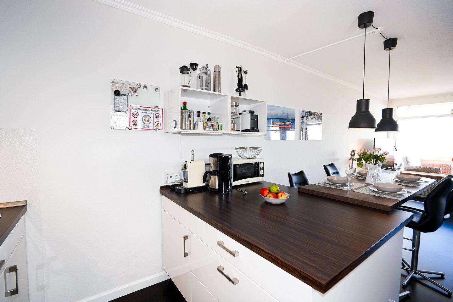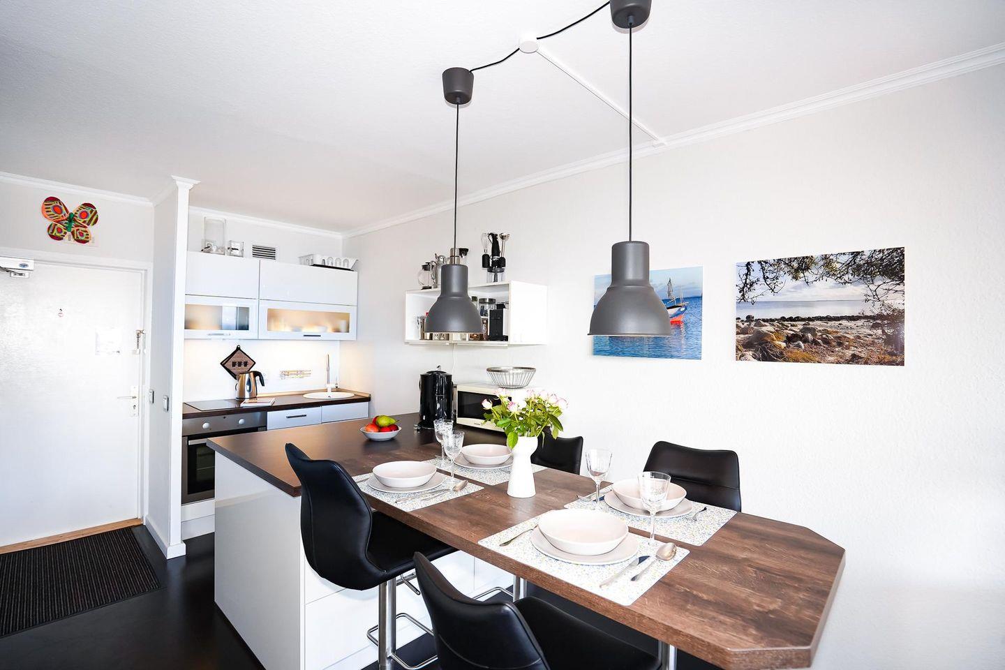 Der offen gestaltete Wohnraum verfügt über ein komfortables Eck-/Schlafsofa , von welchem Sie den tollen Ausblick auf die Lübecker Bucht genießen können. Die zum Wohnzimmer offene Küche mit Essbereich ist voll ausgestattet und lädt zum verweilen ein. Auch von hier haben Sie einen herrlichen Blick auf das Meer. Das Badezimmer mit Wanne und WC ist komfortabel ausgestattet. Im kleinen Schlafzimmer schlafen Sie bequem mit 2 Personen. Bei einem kalten oder heißen Getränk genießen Sie den wundervollen Blick auf die Bucht.