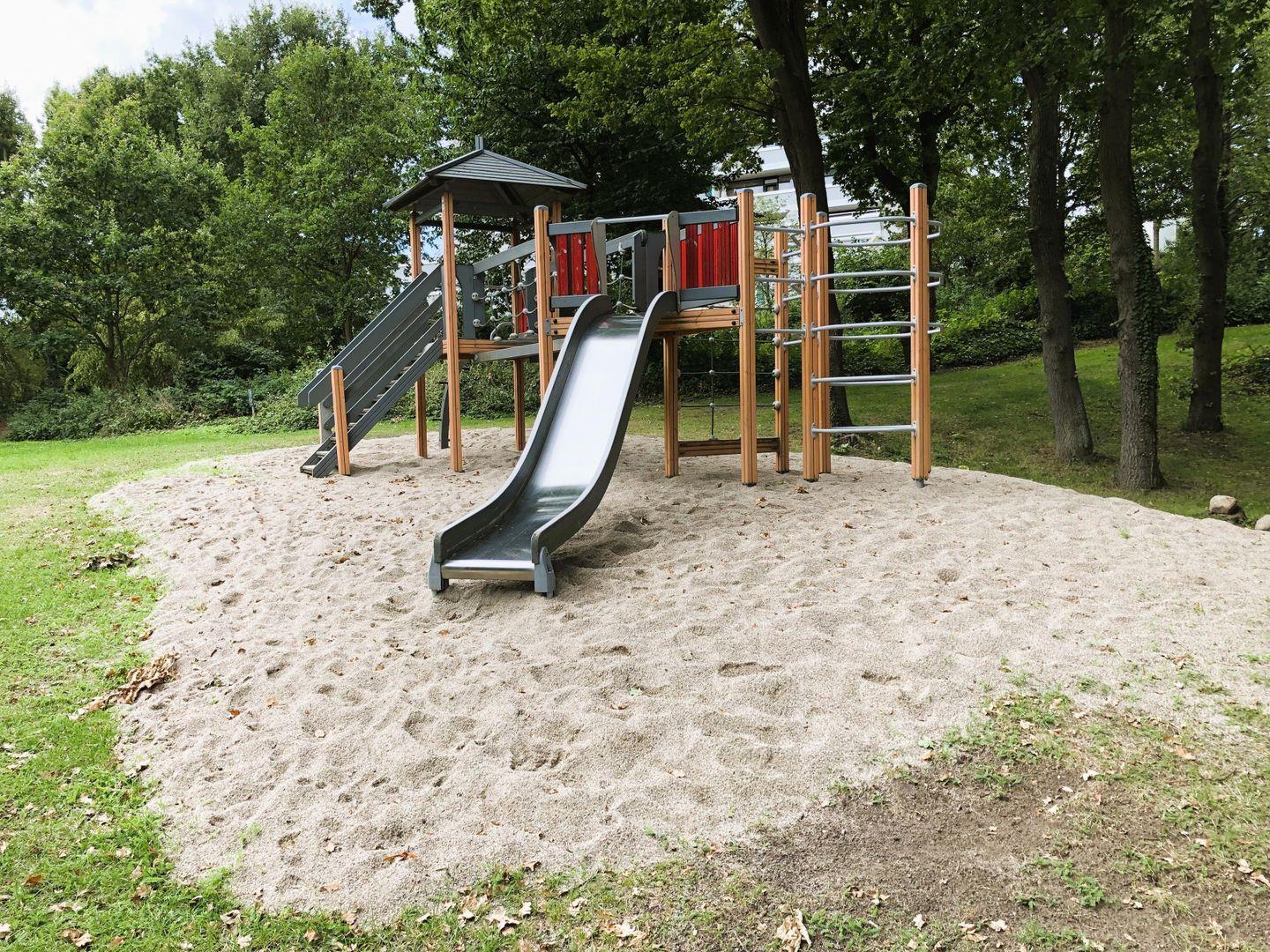 Die Türdurchgänge Bad/WC und Schlafräume sind etwas enger. Das Bad/WC ist mit einer Dusche und mit einem großen Eckeinstieg. Das Bad ist wie folgt ausgestattet: Waschtisch, beleuchteter Wandspiegel mit Uhr, Spiegelbadezimmerschrank, Kosmetikspiegel, Haar-Fön, Waschmaschine, Putzschrank - Wäschetrockenständer. Zur parkähnlichen Panoramic–Anlage gehören: – Schwimmhalle (Eintritt gegen Gebühr), Fahrrad–Außenstellplätze, gepflegter Spielplatz, Tennisplatz, Tischtennisplatte, Basketballkorb, Bocciabahn, Sitzbänke, Kneipe.