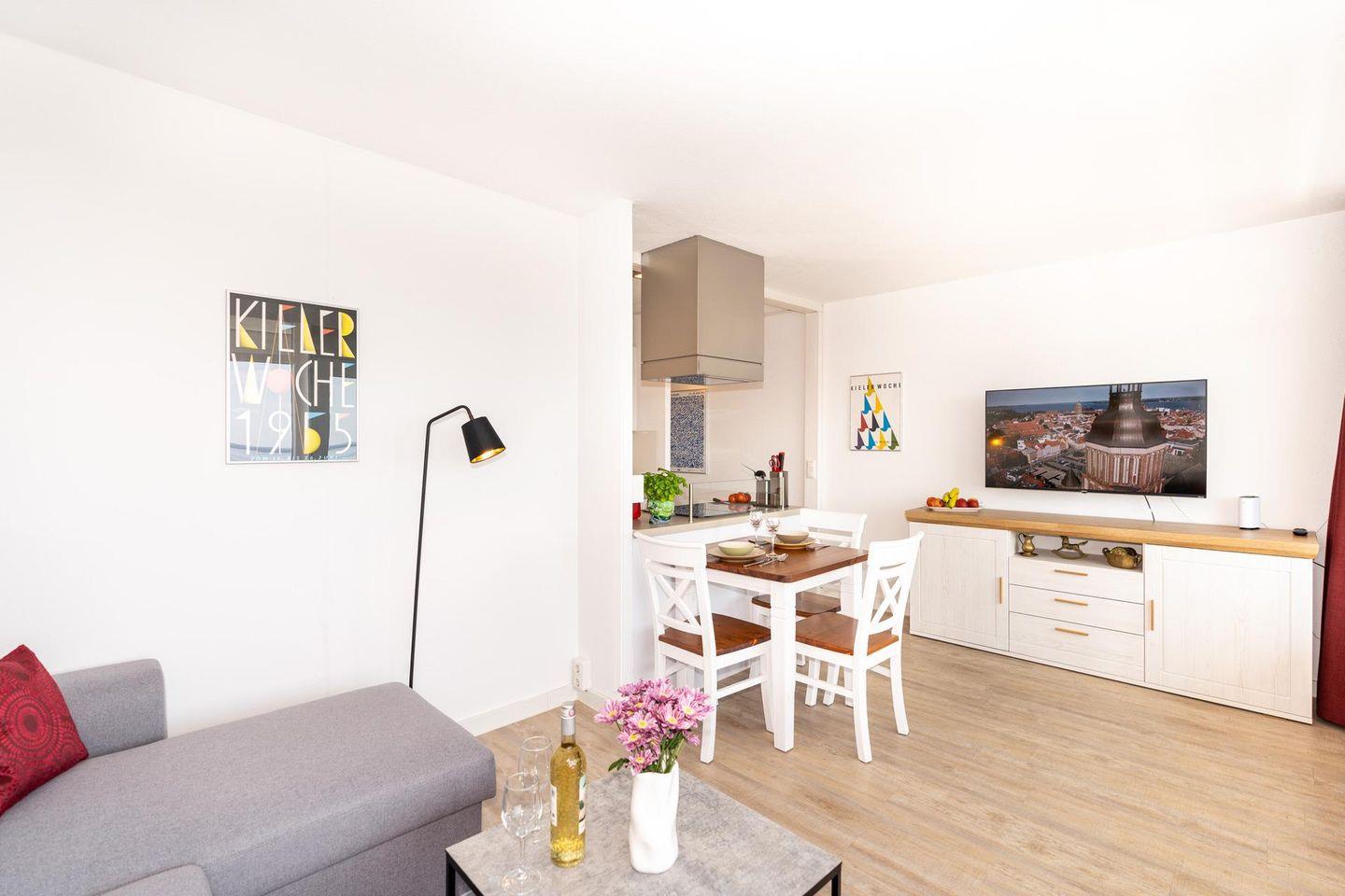 Der beliebte Freizeitpark Hansa-Park ist in wenigen Minuten fußläufig erreichbar – und dennoch hört man ihn nicht, denn das Apartment liegt auf der abgewandten Seite der Anlage.