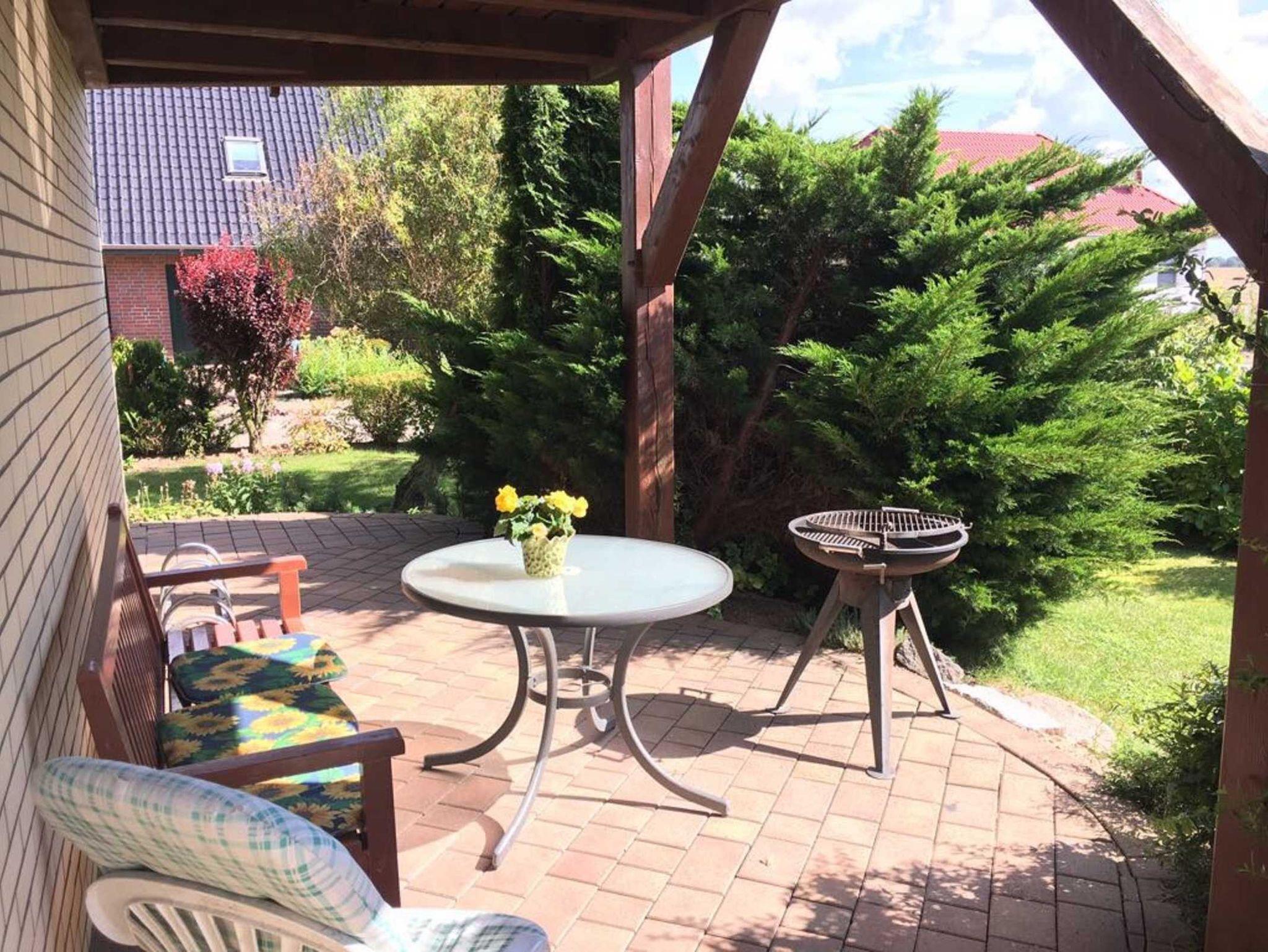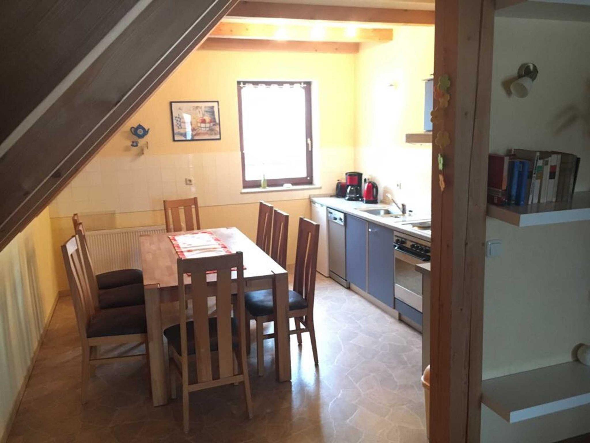 Die Ferienwohnung befindet sich im Obergeschoss im Hause des Vermieters, hat eine Größe von 90 m². Die Wohnung besteht aus 3 Schlafzimmern, davon zwei mit einem Doppelbett und ein Mehrbettzimmer mit einem Doppelbett und einem Einzelbett. Im Wohnraum befindet sich eine Sitzecke, Kamin, Sat-TV, Stereoanlage, Bücher und Spielesammlung. Die Küche ist zum Wohnzimmer offen und voll ausgestattet mit Herd, Abzugshaube, Kühlschrank mit Gefrierfach, Backofen, Mikrowelle, Kaffeemaschine und Toaster. Das Badezimmer ist mit einer Dusche, einer Badewanne, WC und Fön ausgestattet. Wäschepaket pro Person gegen Gebühr (Bettwäsche, 1 Badehandtuch/1 Handtuch).