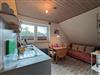 Man erreicht die Räumlichkeiten durch einen separaten Eingang über einen Gemeinschaftsflur, der z.T. an die Eigentümerwohnung grenzt, über eine schmale, steile Treppe. Im Eingangsbereich gibt es eine Sitzgelegenheit für die Gäste. Das Schlafzimmer für ein bis zwei Personen (1,40 x 2,00 m), eine kleiner Aufenthaltsraum mit Küchenzeile, Esstisch, Sofa und TV sowie ein Wannenbad befinden sich im Obergeschoss. Durch die offene Bauart ist die Unterkunft keine abgeschlossene Wohneinheit.