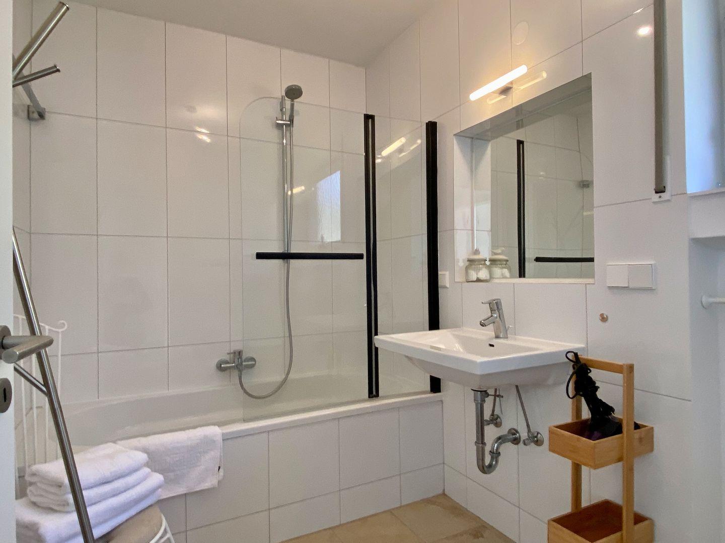 Die Wohnung eignet sich zudem hervorragend für Workation-Aufenthalte: Highspeed-Internet und zwei separate, flexibel nutzbare Arbeitsplätze ermöglichen produktives Arbeiten auch im Urlaub. Im großzügigen Badezimmer erwartet Sie eine Badewanne mit Duschabtrennung und WC; ein weiteres separates WC liegt direkt nebenan.