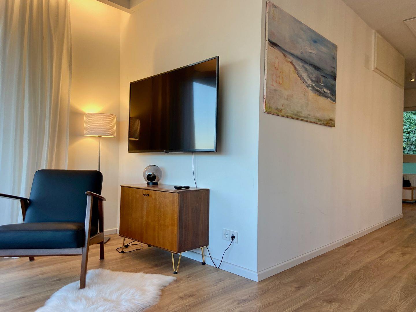 Die frisch renovierte 3-Zimmer-Wohnung bietet Platz für 4–6 Personen und ist mit zwei behaglichen Schlafzimmern mit Doppelbetten ausgestattet. Bei Bedarf lässt sich die Couch im Wohnbereich bequem in eine zusätzliche Schlafgelegenheit verwandeln. Die stilvolle Einrichtung kombiniert liebevoll erhaltene Originalmöbel des letzten Jahrhunderts mit modernen Designelementen und schafft so eine einladende Wohnatmosphäre.