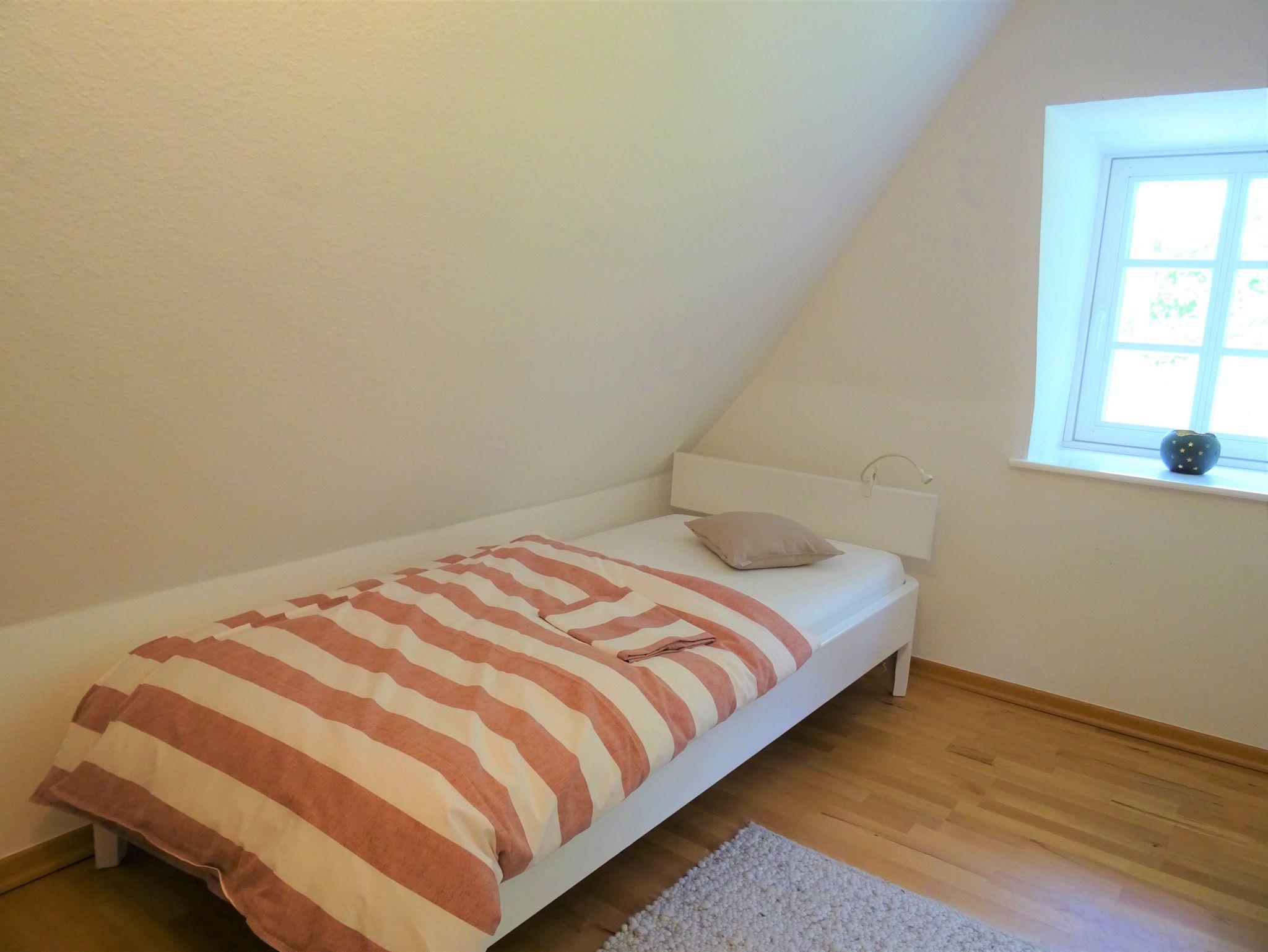 Unser Ferienhaus ist 85 m² groß und gemütlich wie hochwertig eingerichtet: im Erdgeschoss finden Sie das Wohnzimmer mit Sofaecke, Lesesessel und Esstisch, eine kleine, aber gut ausgestattete Küche mit einer Sitzecke und Blick ins Grüne, das moderne Badezimmer mit Dusche und einen Hauswirtschaftsraum. Im Obergeschoss liegen ein Schlafzimmer mit Doppelbett (1,80 x 2,00 m) und ein Schlafzimmer mit zwei Einzelbetten, in denen es sich in der ruhigen Umgebung herrlich schlafen lässt.