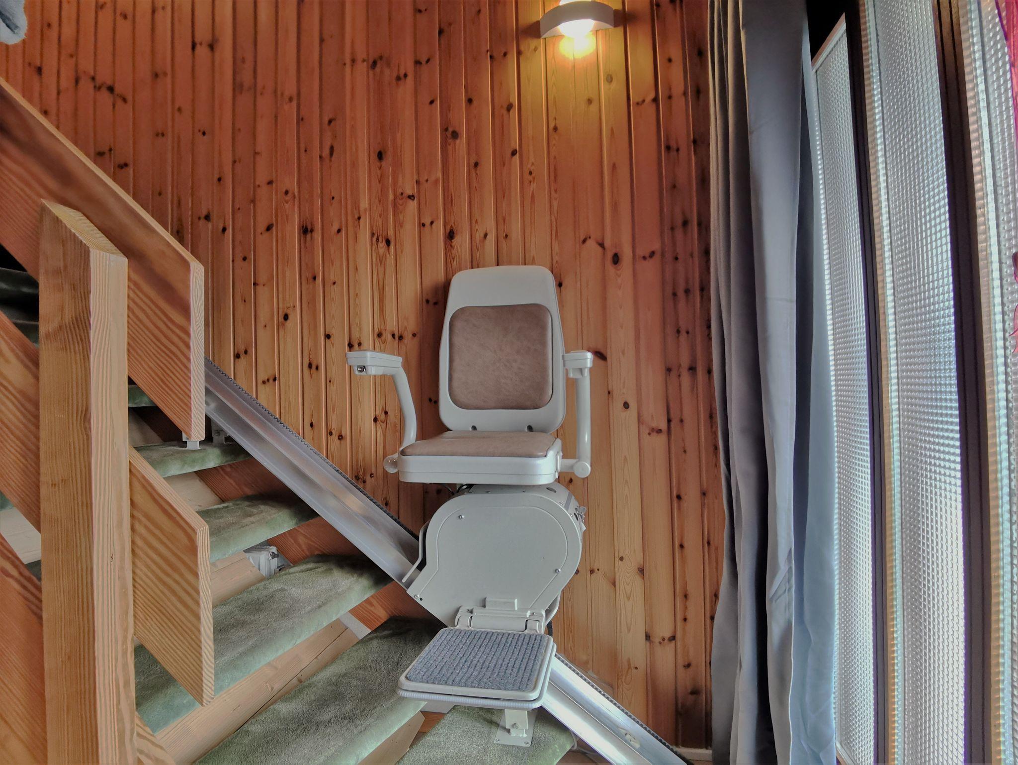 Der Aufgang zum Obergeschoss kann mit einem Treppenlift überwunden werden und ist somit auch für Gäste geeignet, die keine Treppen steigen können.