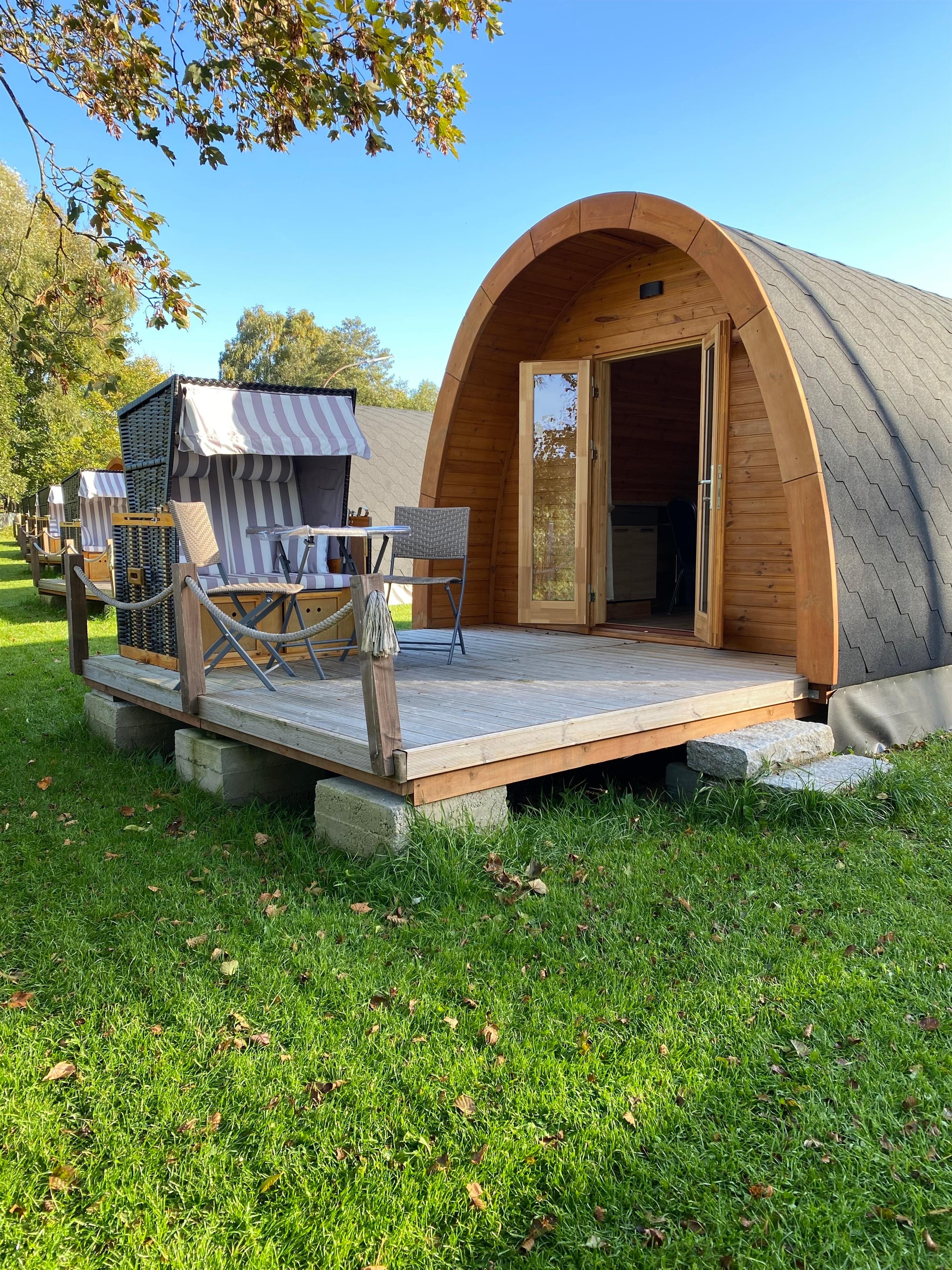 Der Pod ist mit einem eigenen Duschbad inkl. WC und Waschbecken, einem bequemen Doppelbett, einem Sofa was auch gleichzeitig eine weitere Schlafmöglichkeit sein kann, einem Esstisch mit zwei Stühlen, Ablageflächen, einem LCD Flachbildfernseher, Geschirr, Besteck, Wasserkocher und einen Kühlschrank mit kleinem Gefrierfach ausgestattet. Egal ob Frühling, Sommer, Herbst oder Winter, der Pod steht für Sie immer zur Verfügung. Durch eine elektrische Heizung mit Kaminfeuereffekt, sind auch die kalten Tage gemütlich warm zu verbringen. Auf der Terrasse, ausgestattet mit Stühlen, einem Tisch und einem angrenzenden Strandkorb (saisonal) können Sie Ihr schönes Frühstück mit Blick aufs Freie oder Abends bei Sternenhimmel einfach genießen.