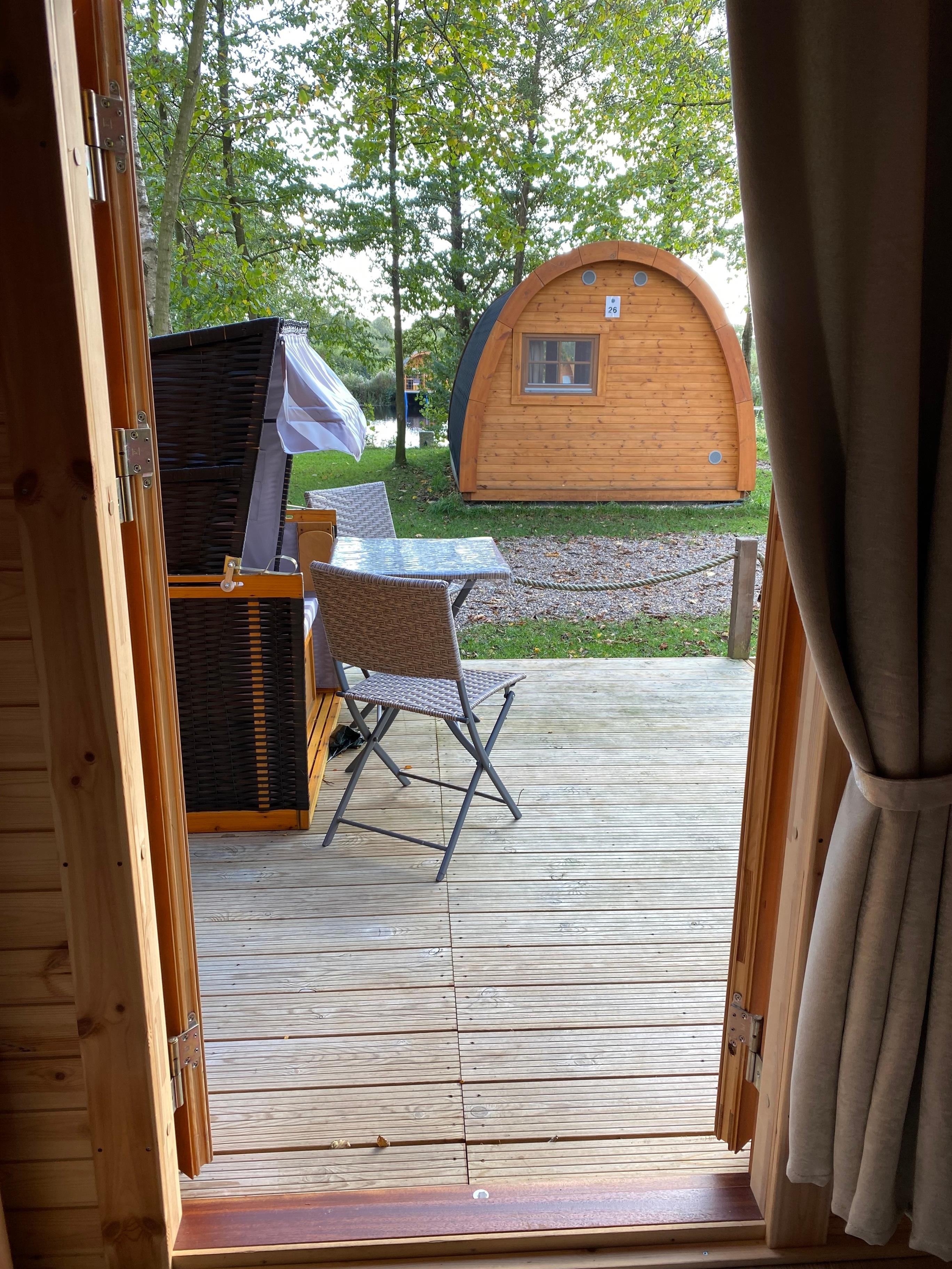 Der Hauptpod ist mit einem eigenen Duschbad inkl. WC und Waschbecken, einem bequemen Doppelbett, einem Sofa was auch gleichzeitig eine weitere Schlafmöglichkeit sein kann, einem Esstisch mit zwei Stühlen, Ablageflächen, einem LCD Flachbildfernseher, Geschirr, Besteck, Wasserkocher und einen Kühlschrank mit kleinem Gefrierfach ausgestattet. Der Mini-Pod ist mit 2 Betten je 80x200cm, 2 Stühlen, einer Kommode ausgestattet. Egal ob Frühling, Sommer, Herbst oder Winter, der Pod steht für Sie immer zur Verfügung. Durch eine elektrische Heizung mit Kaminfeuereffekt, sind auch die kalten Tage gemütlich warm zu verbringen. Auch der Mini-Pod besitzt eine kleine Heizung. Auf der Terrasse, ausgestattet mit Stühlen, einem Tisch und einem angrenzenden Strandkorb (saisonal) können Sie Ihr schönes Frühstück mit Blick aufs Wasser oder Abends bei Sternenhimmel einfach genießen.