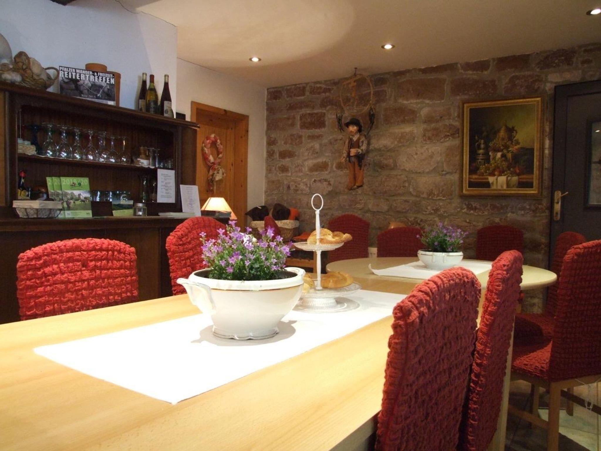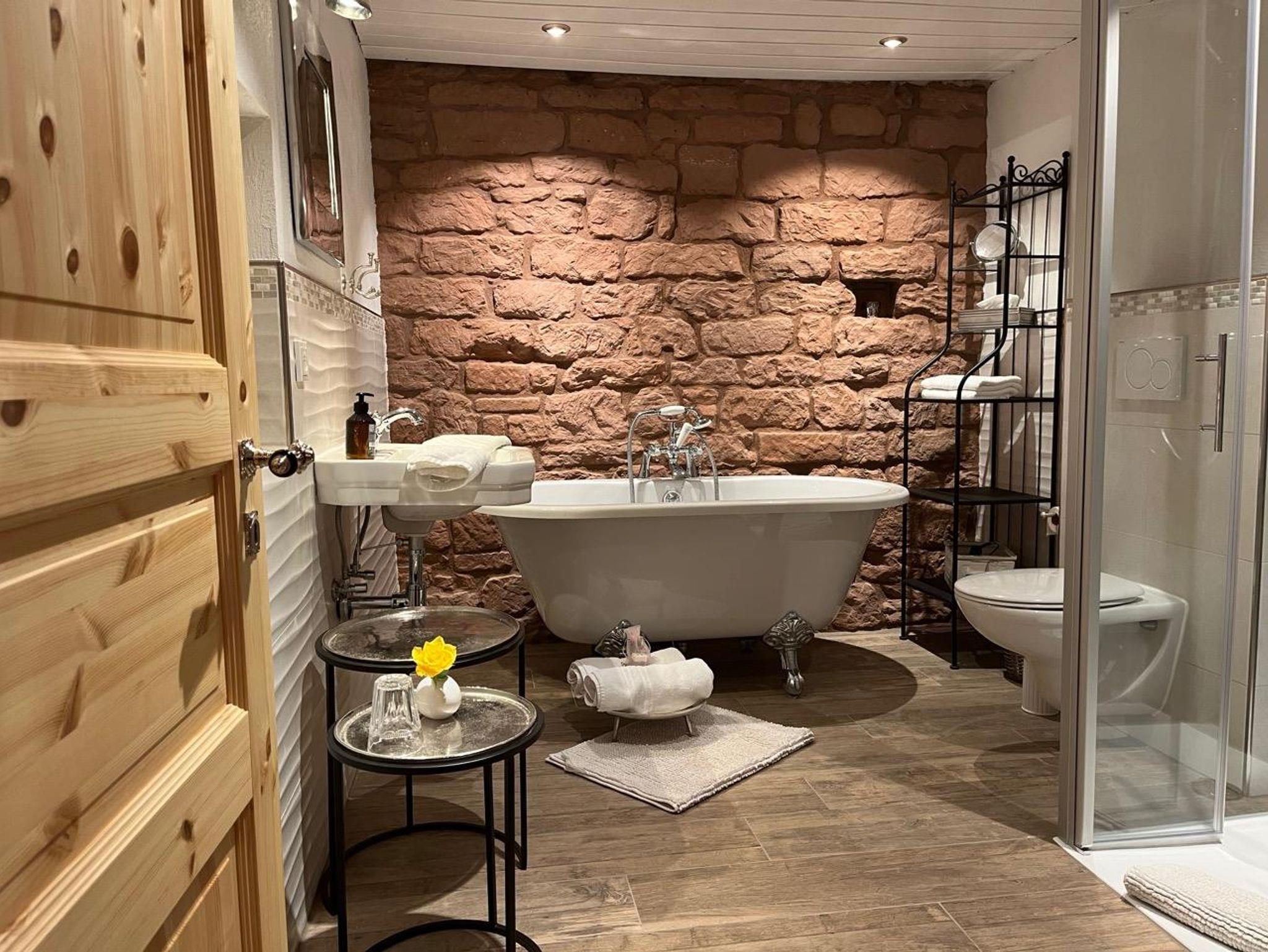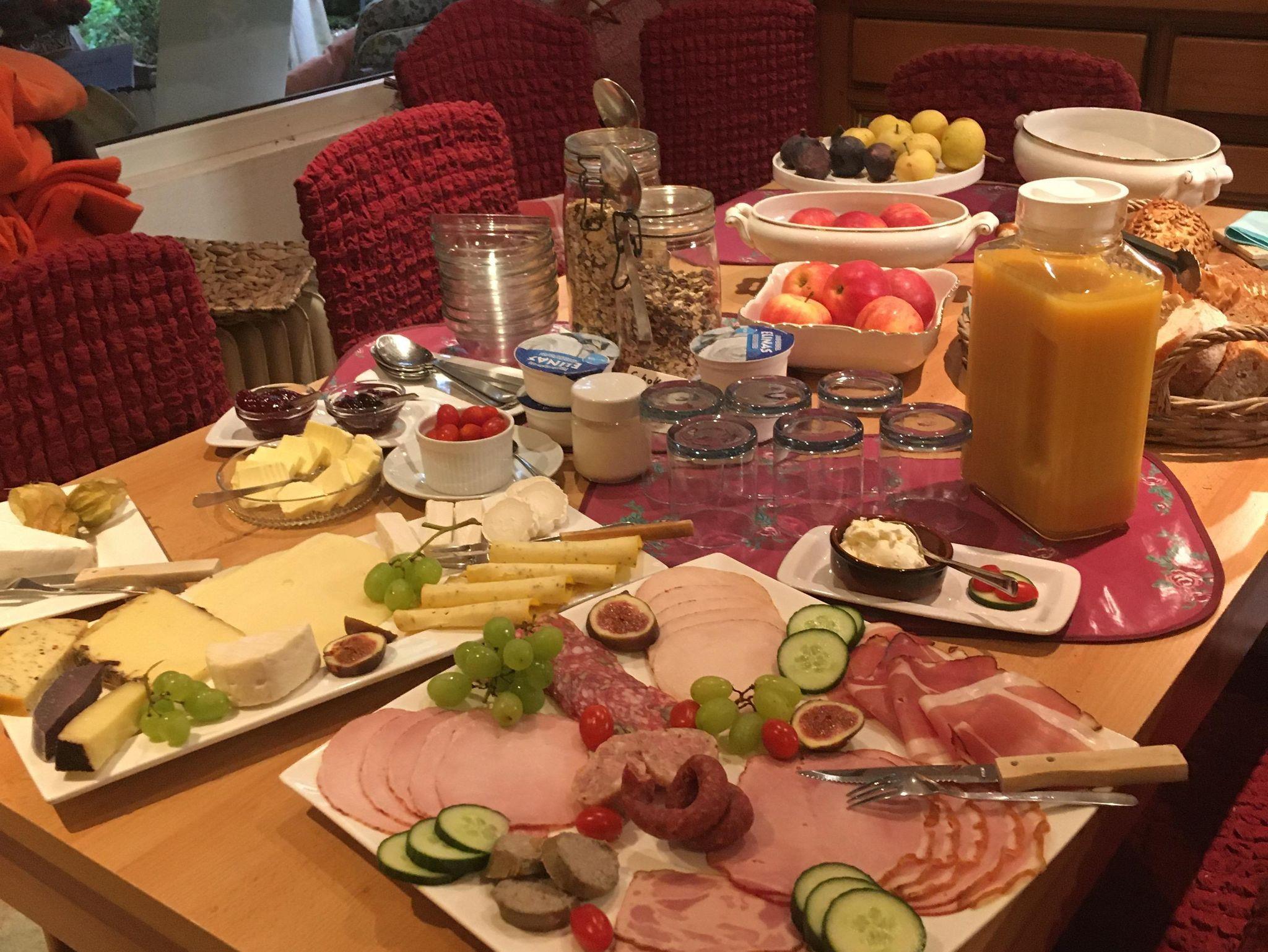 Entspannen Sie im besonderen Ambiente unserer liebevoll ausgestatteten Gästzimmer im engl. Landhausstil und in unserem malerischen Garten. Allen Gästen steht unser Frühstücksraum mit großem gehobenem Frühstück und unserem Zwei-Zonen-Weinkühlschrank mit guten Pfälzer Weinen und weiteren Getränken zur Verfügung.