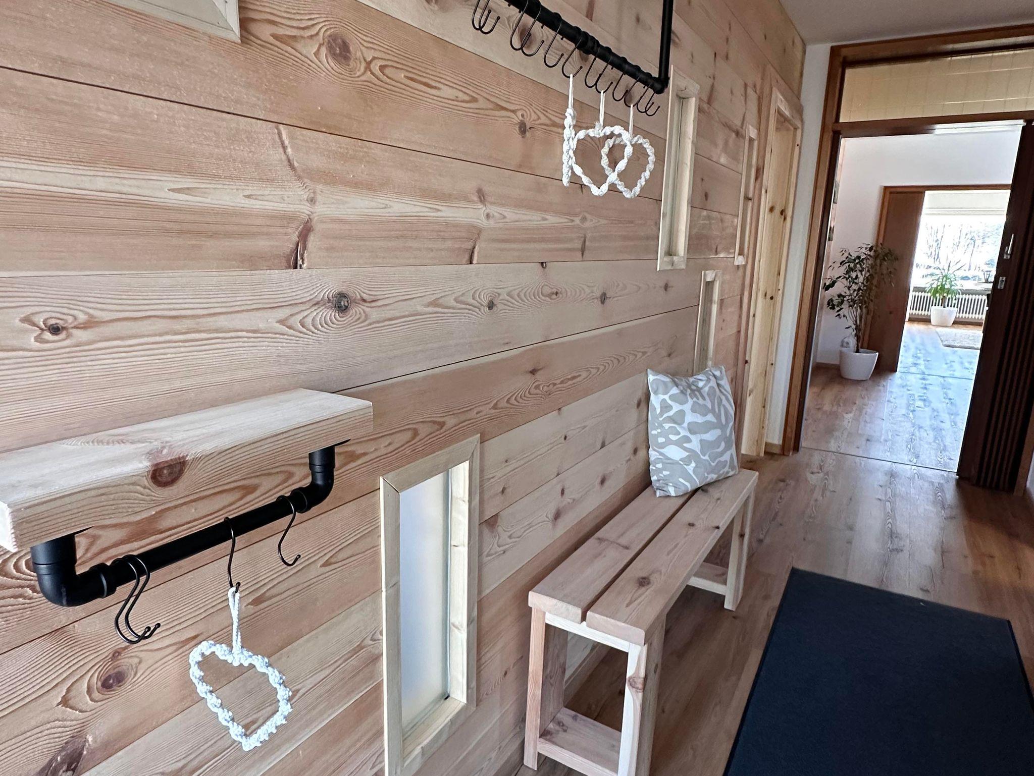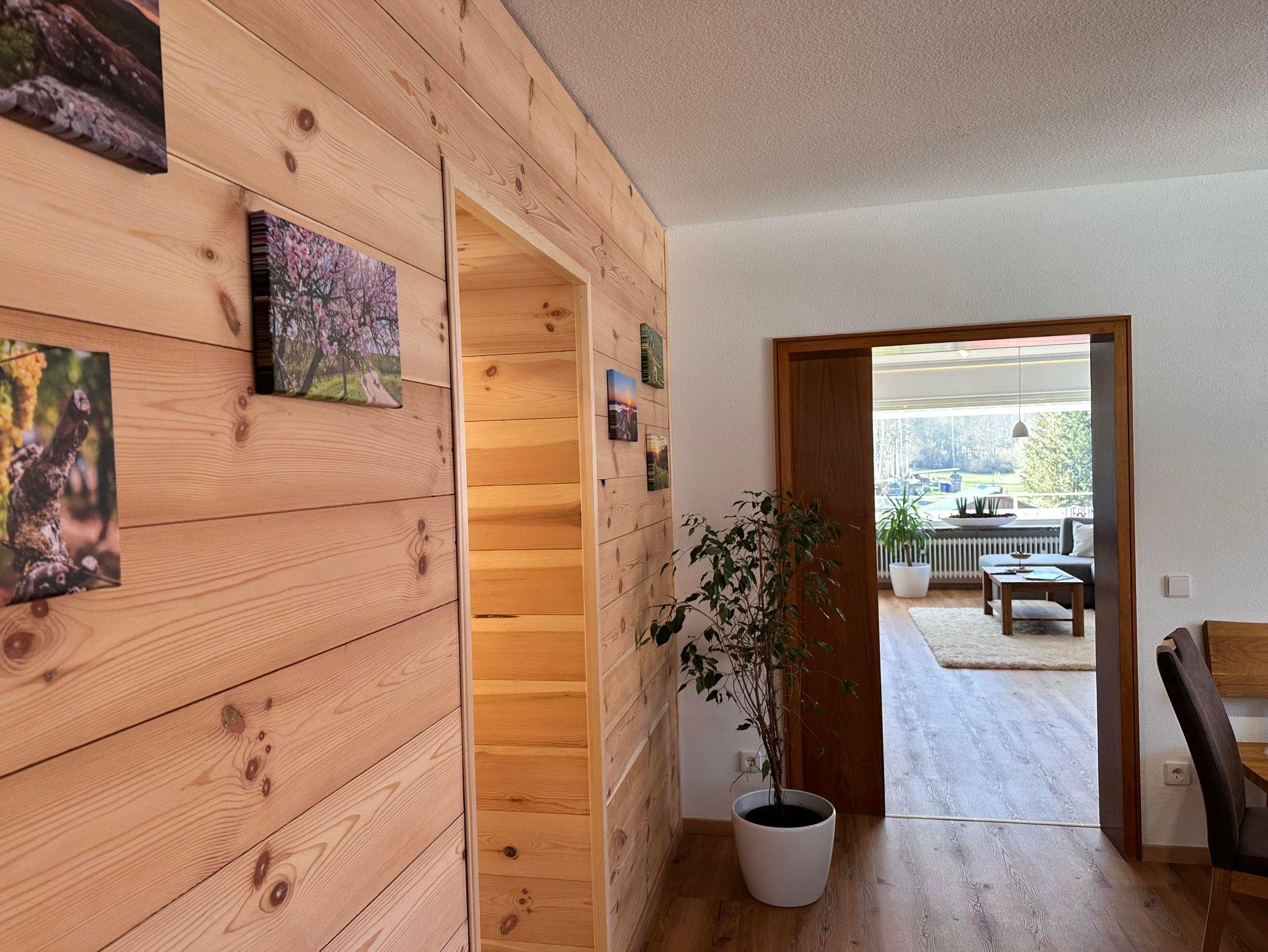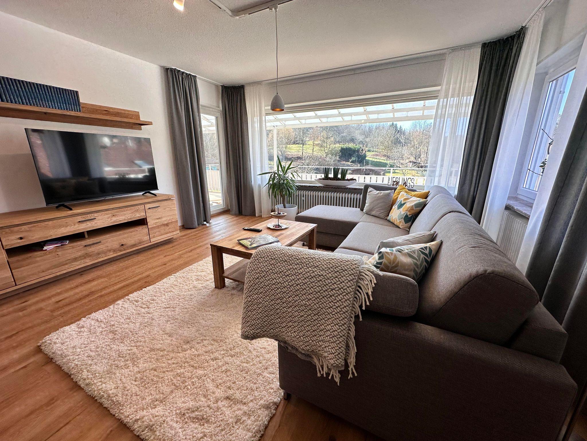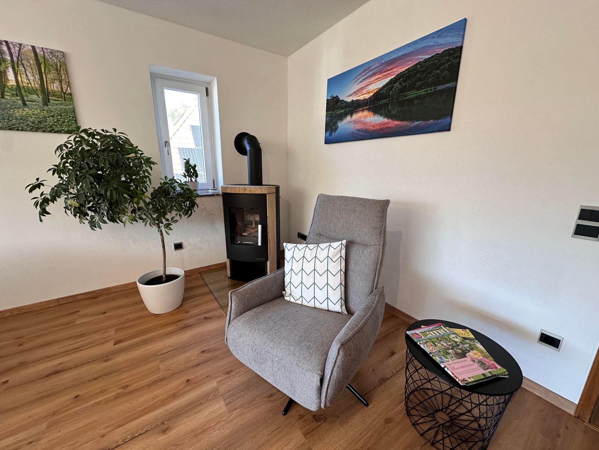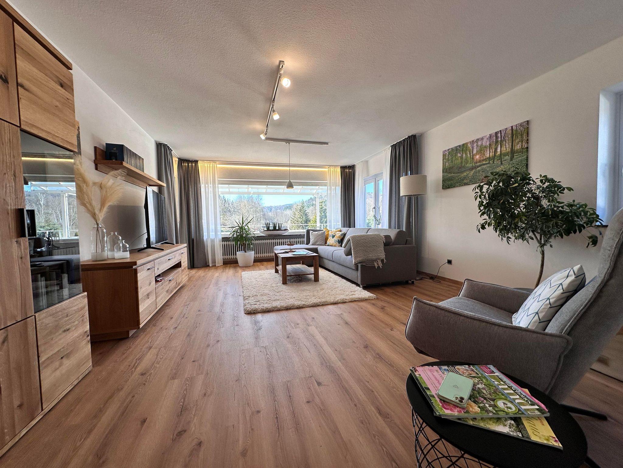 • Großzügiger Wohnbereich mit Schwedenofen, großem Flatt-TV und wunderschönem Blick in den Pfälzer Wald