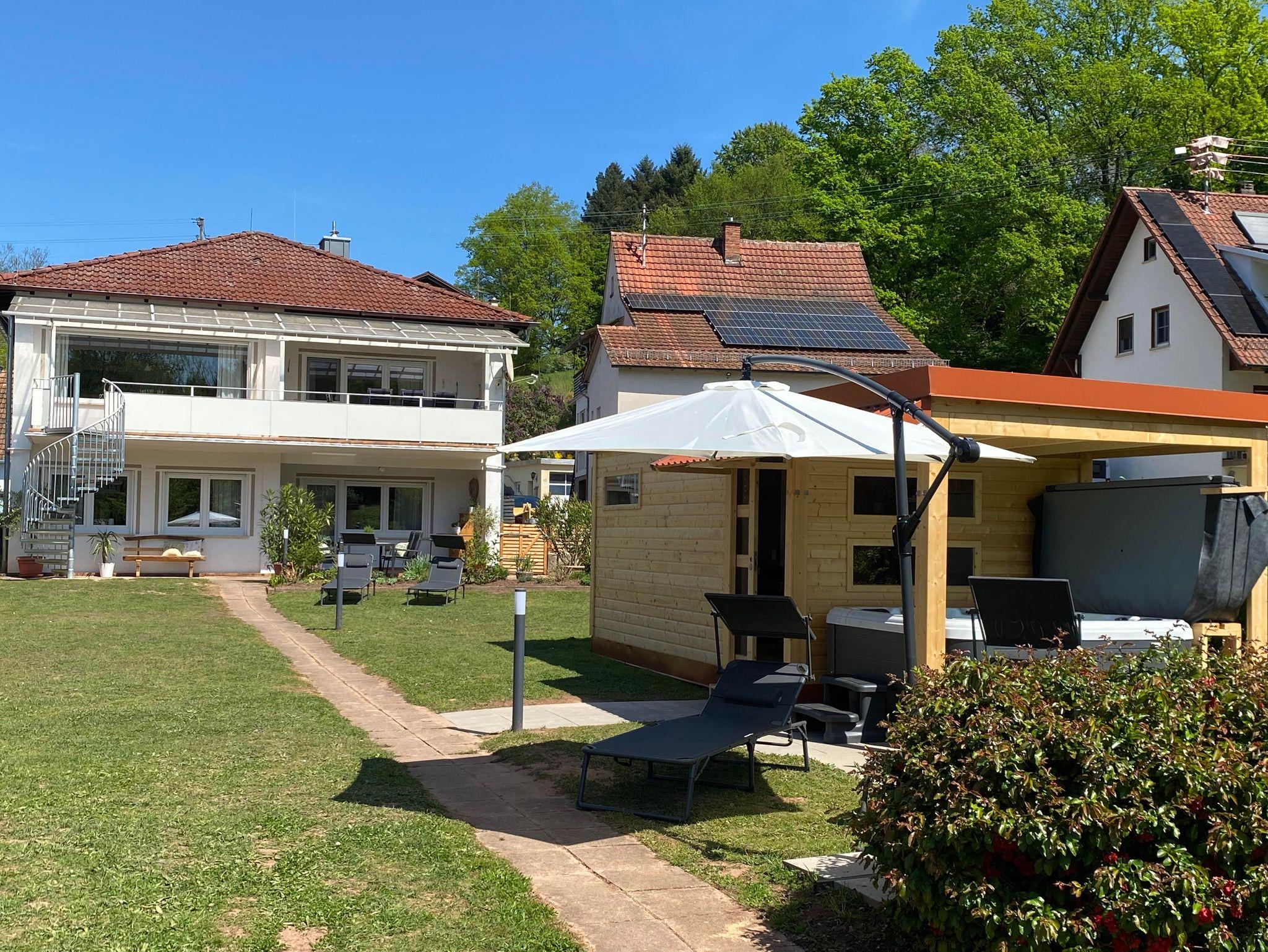 • Zur Wohnung gehört ein großer Balkon mir Freisitz für 8 Personen und direktem Zugang zum großen Garten in dem sich auch das Saunahaus mit Whirlpool befindet