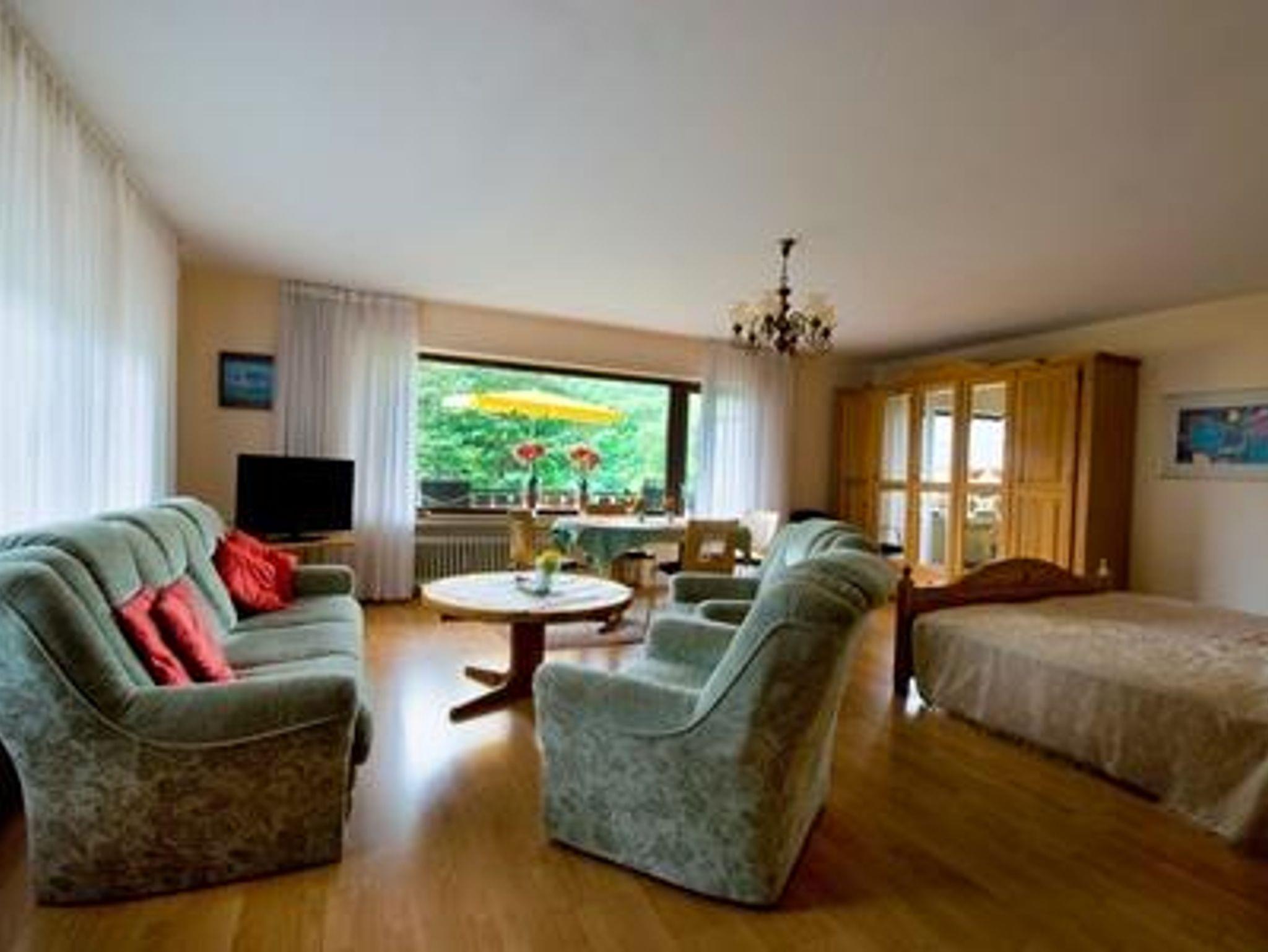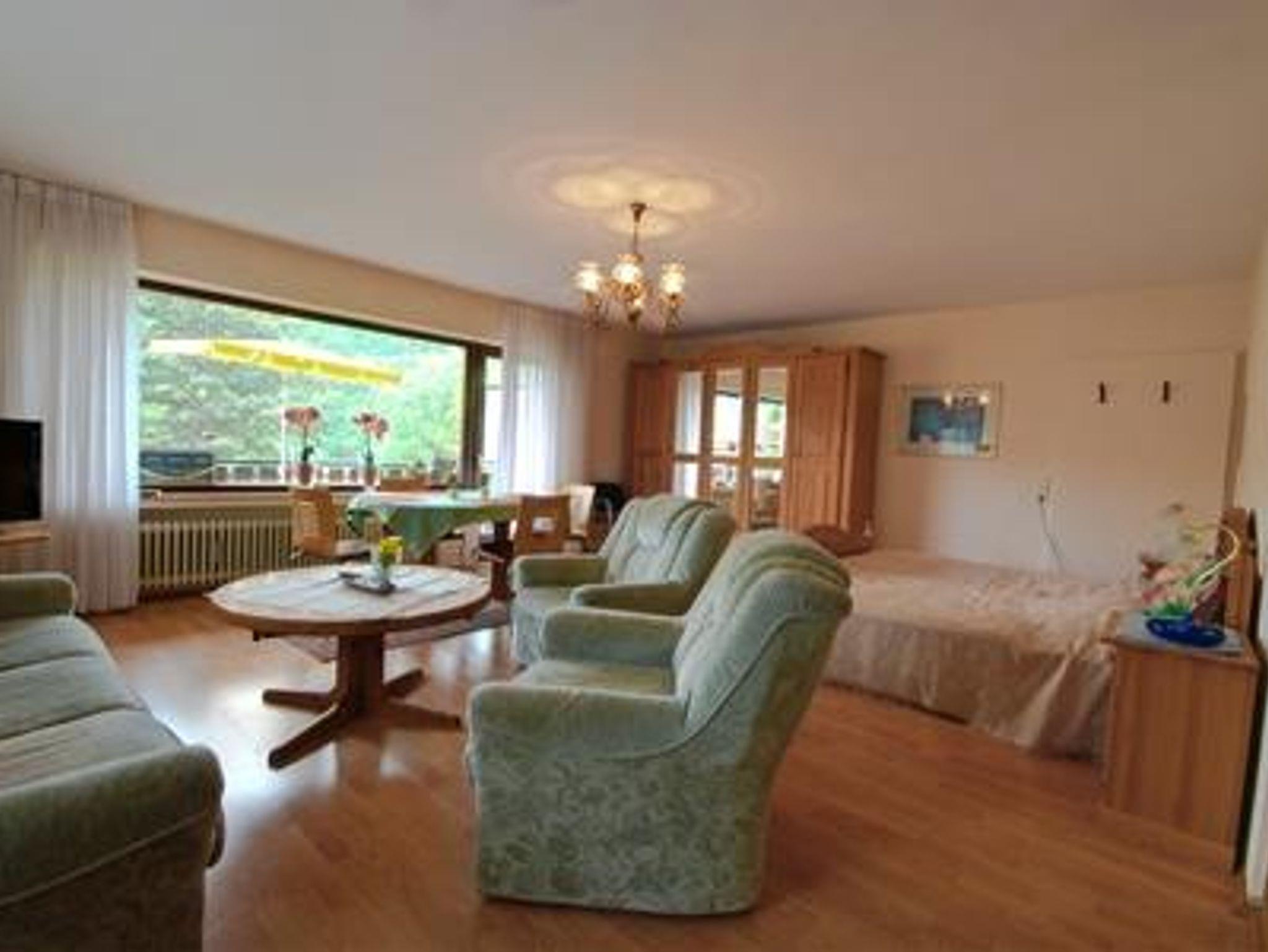 Gemütlich eingerichtete ca. 90 m² große Ferienwohnung mit 1 großem Wohnschlafraum, 1 Schlafraum und separater Küche, komplett ausgestattet mit Mikrowelle, Backofen und Geschirrspülmaschine, großer Südbalkon, Farb-TV, Dusche/Bad/WC, W-Lan.