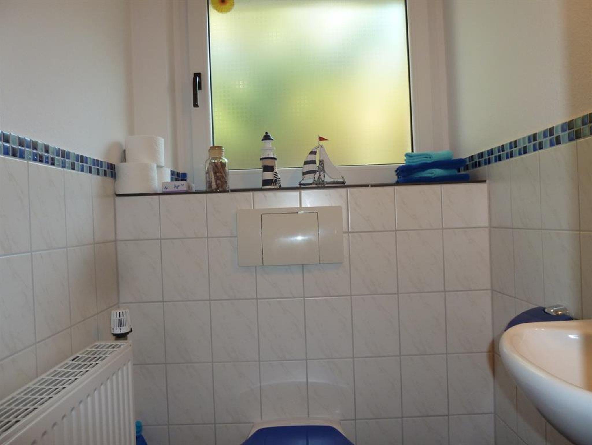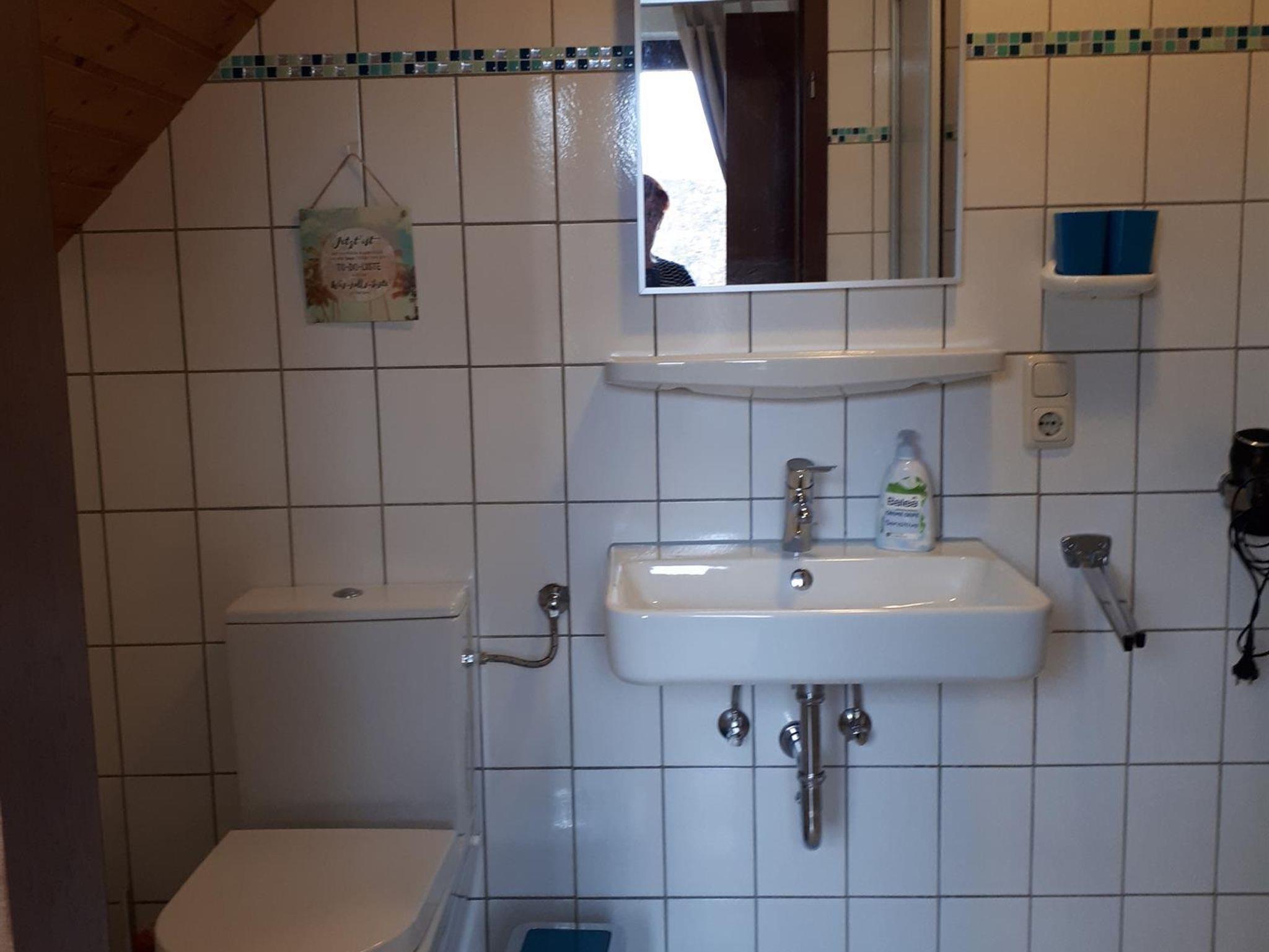 Das Duschbad hat eine angenehme Größe und ist schon mit Hand- und Badetüchetüchern ausgestattet. Auch ein Föhn ist vorhanden.
