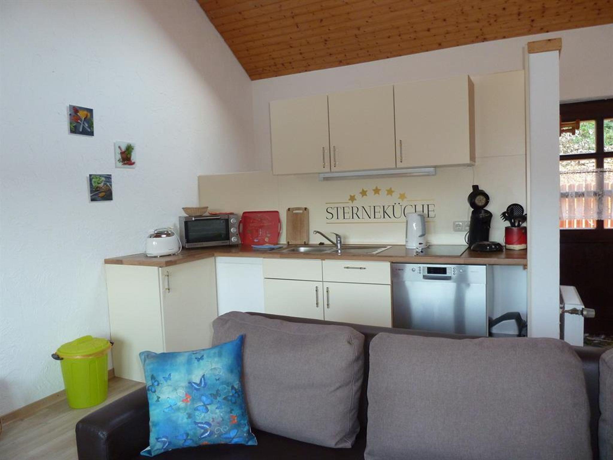 Verfügung. Natürlich ist ein Kühlschrank mit Gefrierfach, eine Kaffeemaschine, Spülmaschine, Eierkocher, Toaster und ein Wasserkocher ebenso vorhanden wie ausreichendes Geschirr, Gläser, Besteck und alles was man zum Kochen braucht. Küchenkrepp, Küchentücher und Kaffeefilter sind immer ausreichend vorhanden.