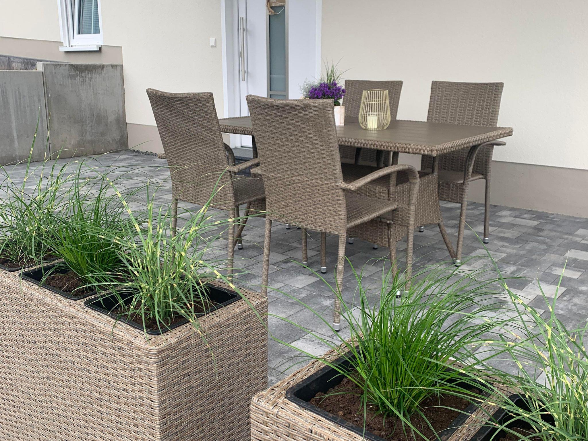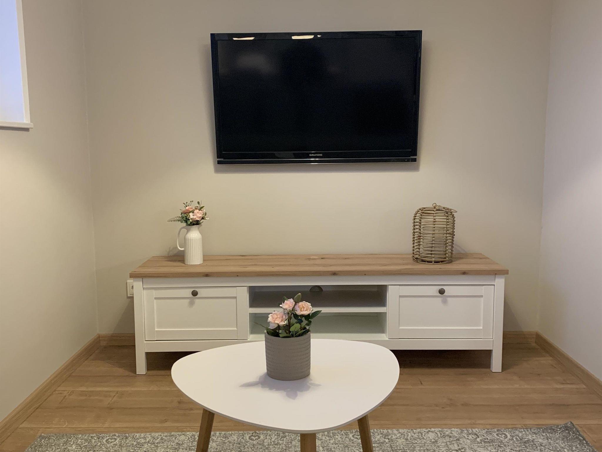 Die Wohnung hat einen kleinen Eingangsbereich mit Garderobe, der direkt in den offenen Wohn-Koch-Essbereich führt. Je nach Personenanzahl stehen ein oder zwei Schlafzimmer zur Verfügung. Es gibt ein Bad mit Dusche und eine große, überdachte Terrasse mit Sitzgelegenheiten.