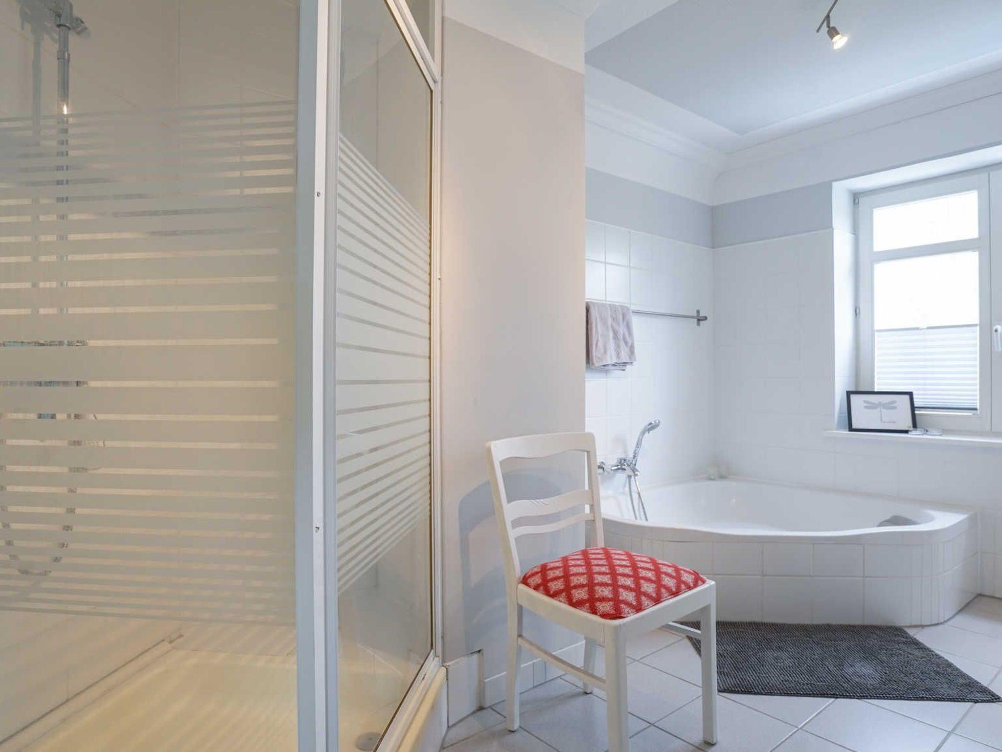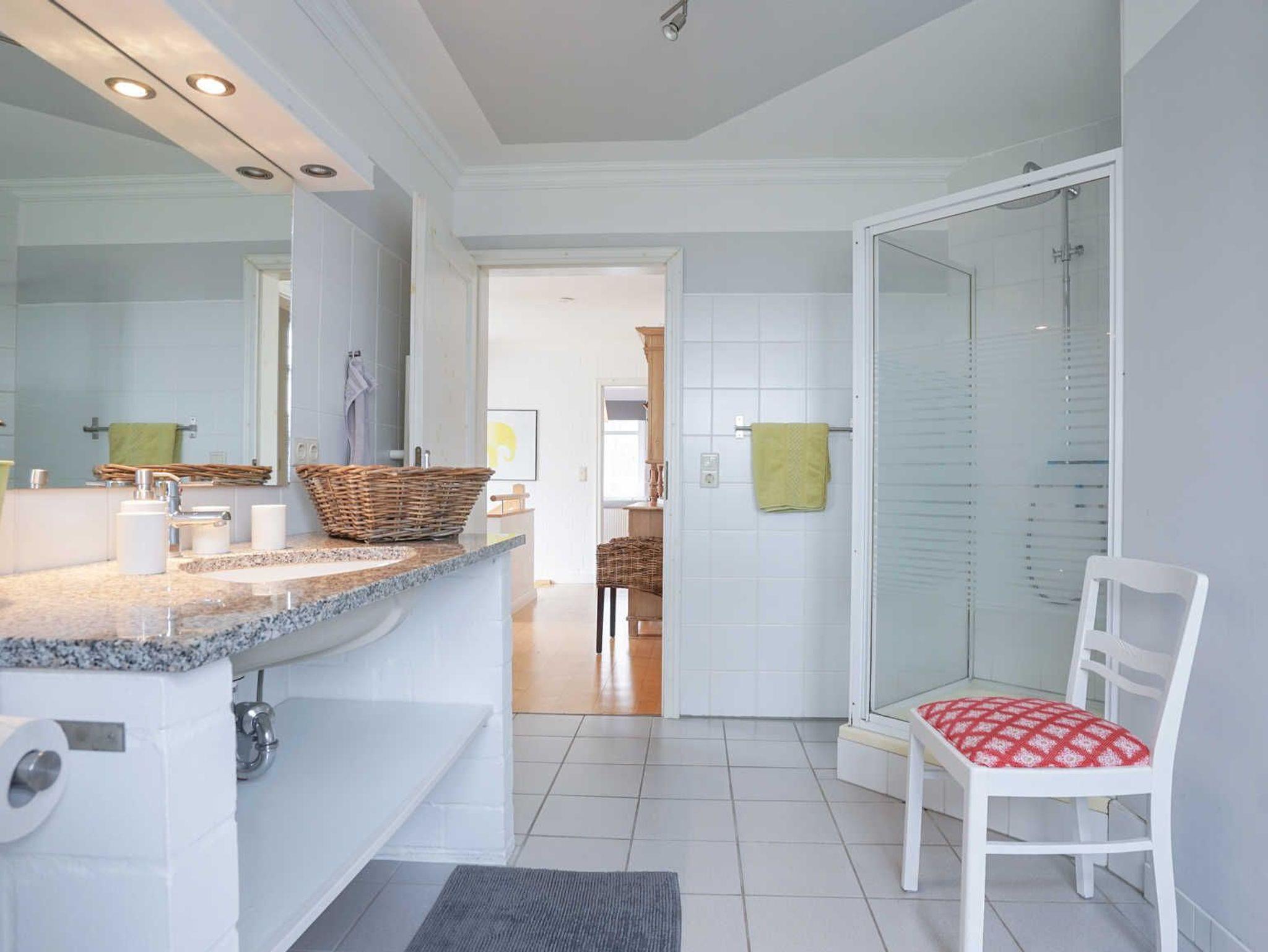 Im großen Badezimmer finden Sie neben einer Dusche auch eine erholsame Eckbadewanne und Fussbodenheizung. In der kleinen aber feinen Küche gibt es viele Utensilien zu entdecken und in der geselligen Essecke mit 6 Stühlen und einem Kindertreppenstuhl können frisch in den Tag starten oder lange Abende verbringen.